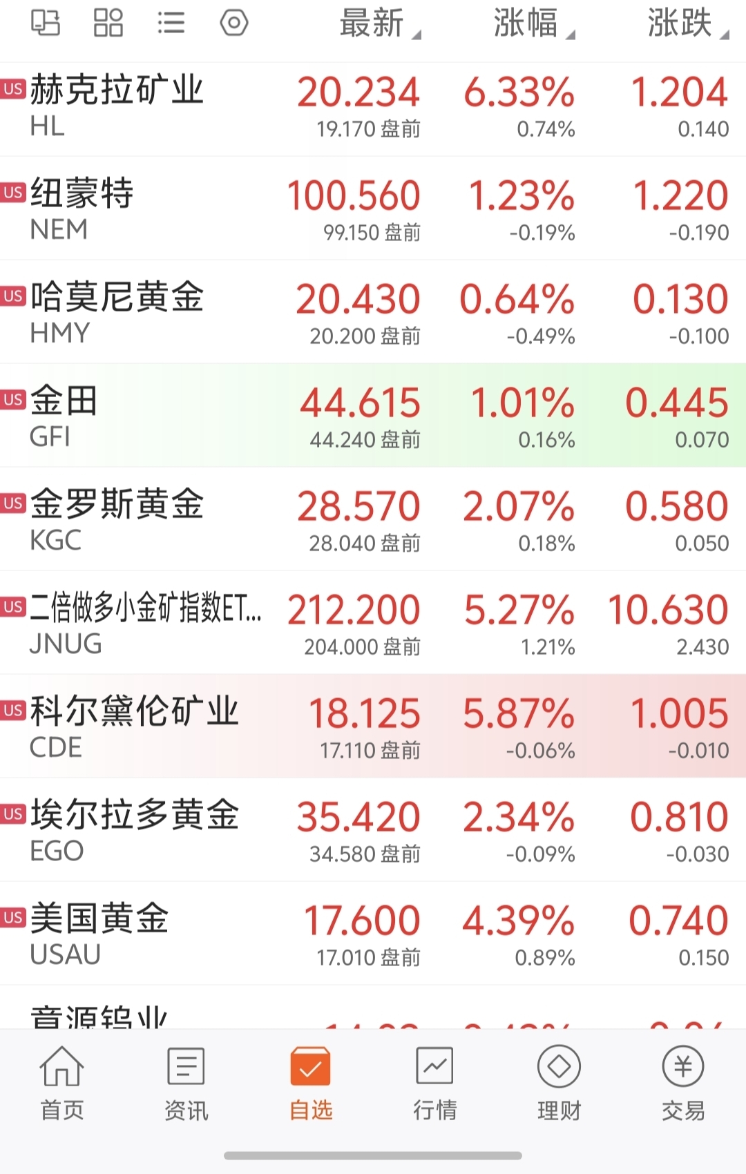 $紫金矿业(SH601899)$ 美股黄金股大涨