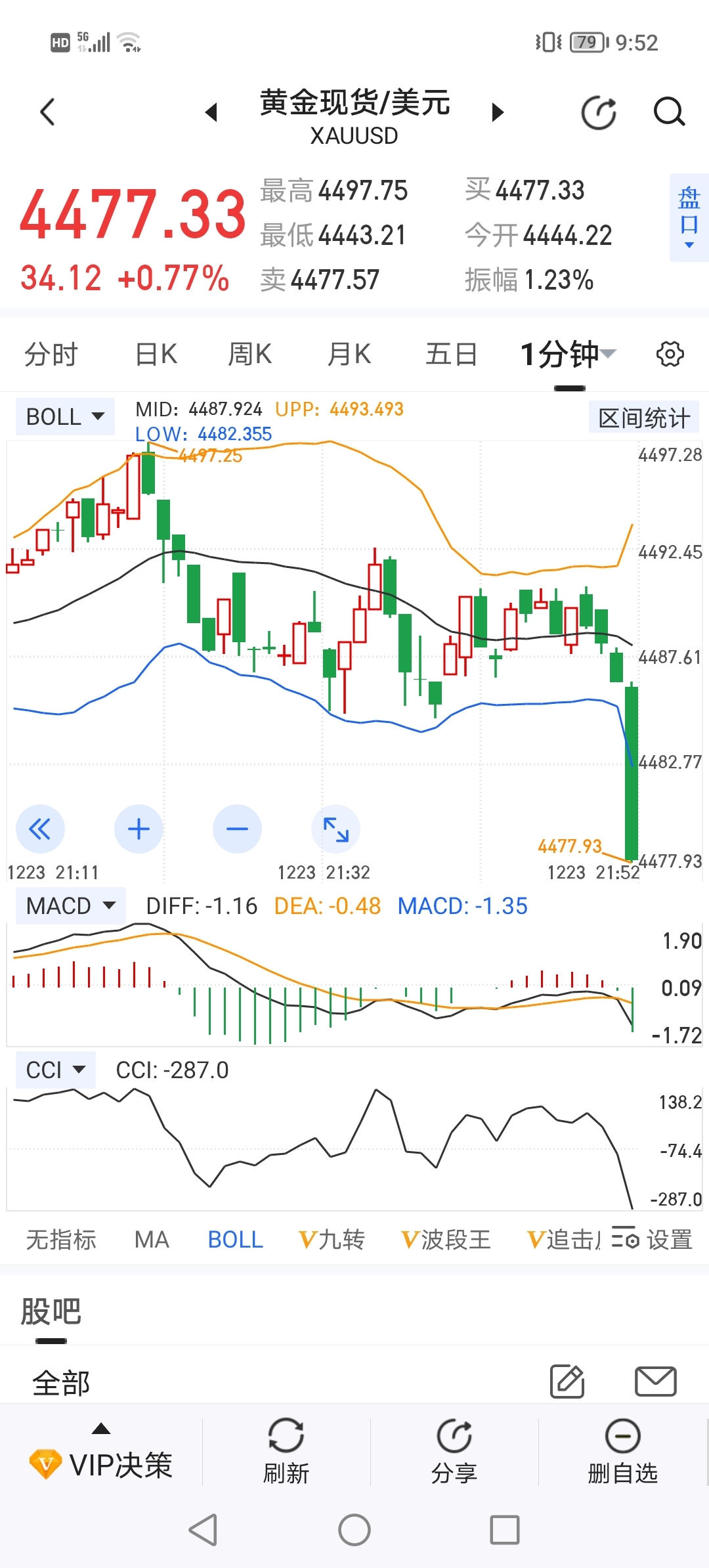 $紫金矿业(SH601899)$ 23日夜盘,黄金短线大跌超20美元