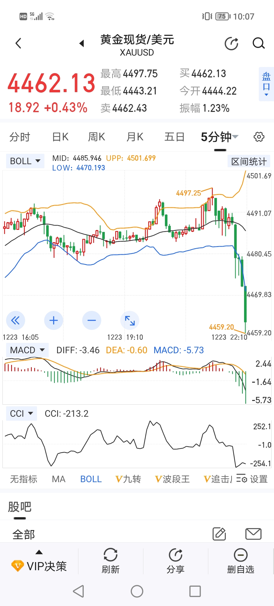 $紫金矿业(SH601899)$ 23日夜盘,此时此刻黄金已经暴跌了!!!