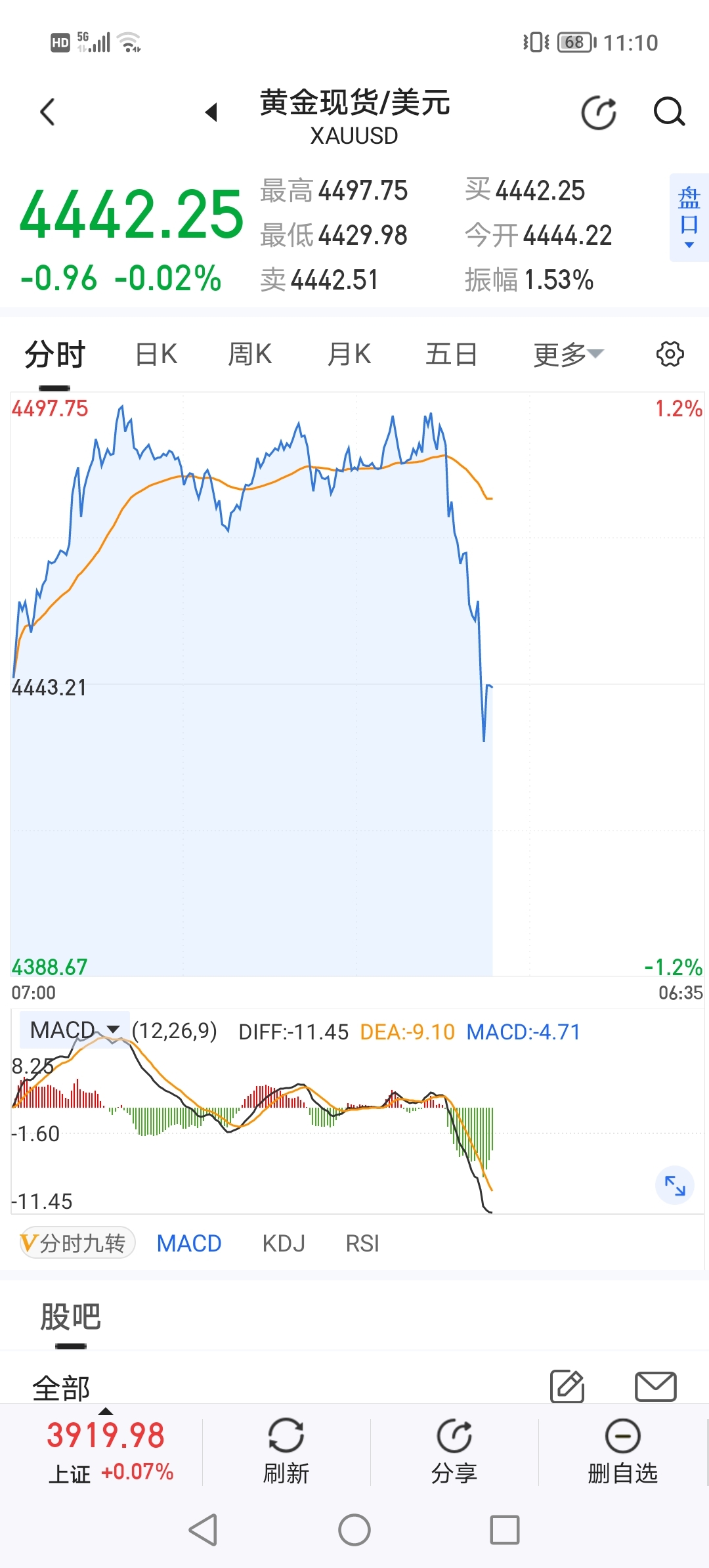 $紫金矿业(SH601899)$ 恐怖之极!!!此时此刻,黄金已经暴跌超70美元