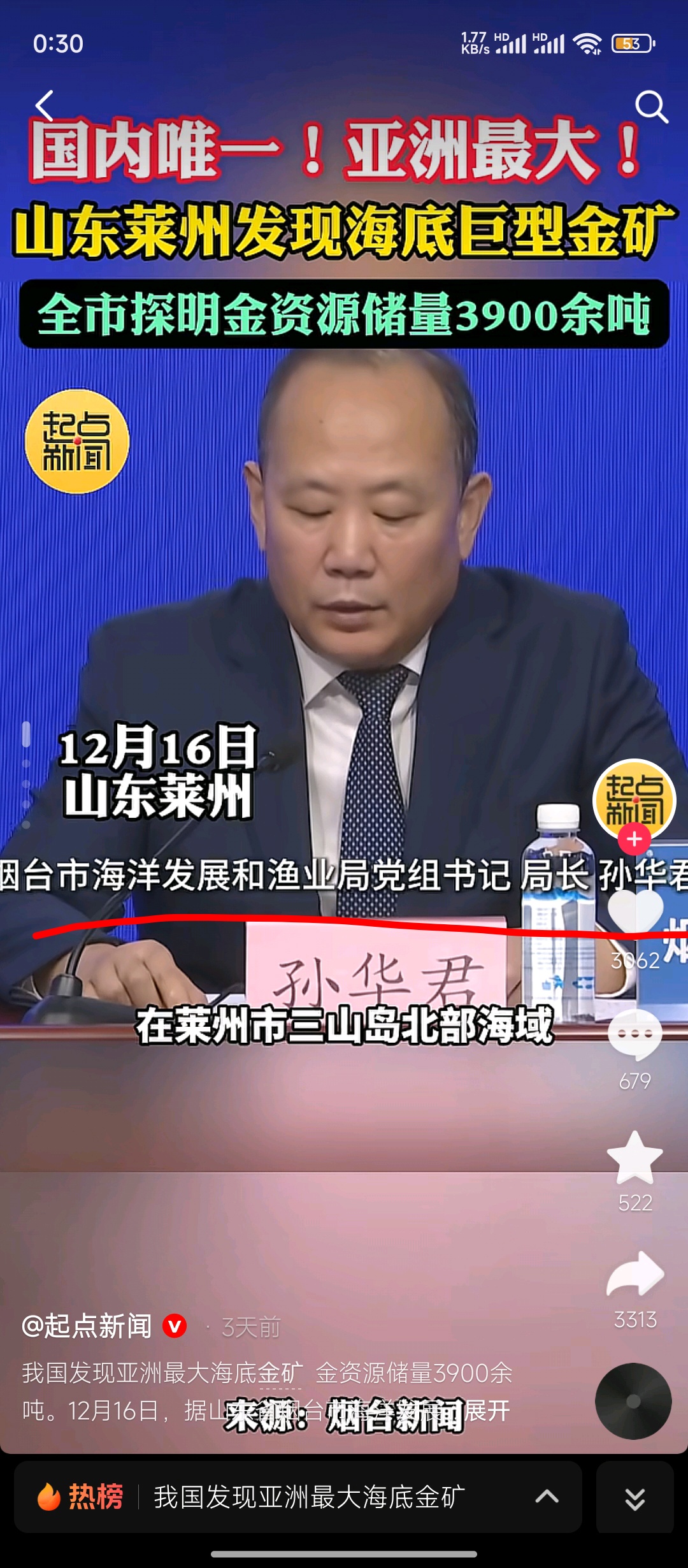再者说如果这莱州三山岛海区不在东方海洋名下,五矿也许不会青睐的,再深扒一下东方海洋现在的股东,各位再企查查,就一目了然了,都是市企,加五矿国企,各位知道海区怎么确权么,知道矿区探测开采怎么确权么,为啥是海洋渔业局发布,不是自然资源局或地质调查局呢。(可查)