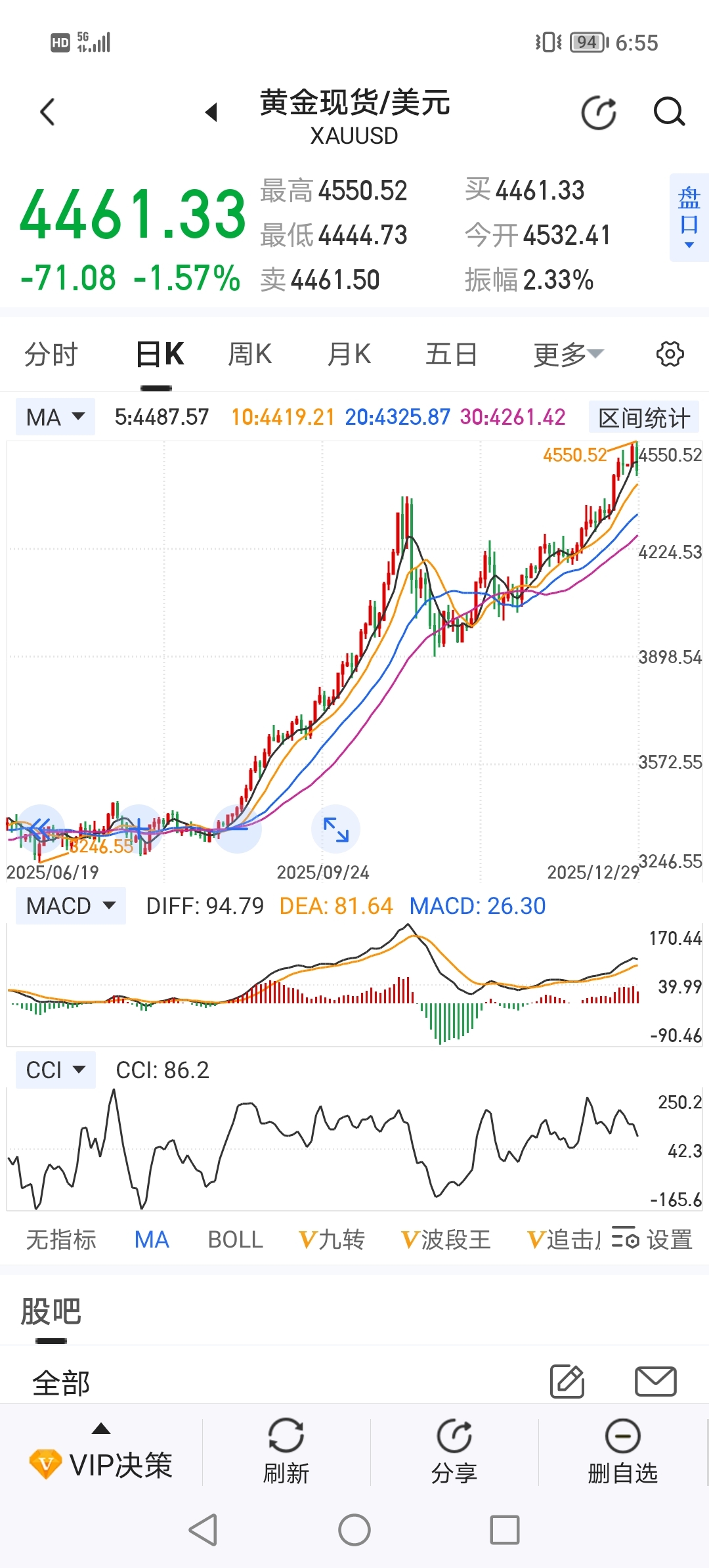 $紫金矿业(SH601899)$ 目前黄金就是早前本人说的典型巨型顶背离