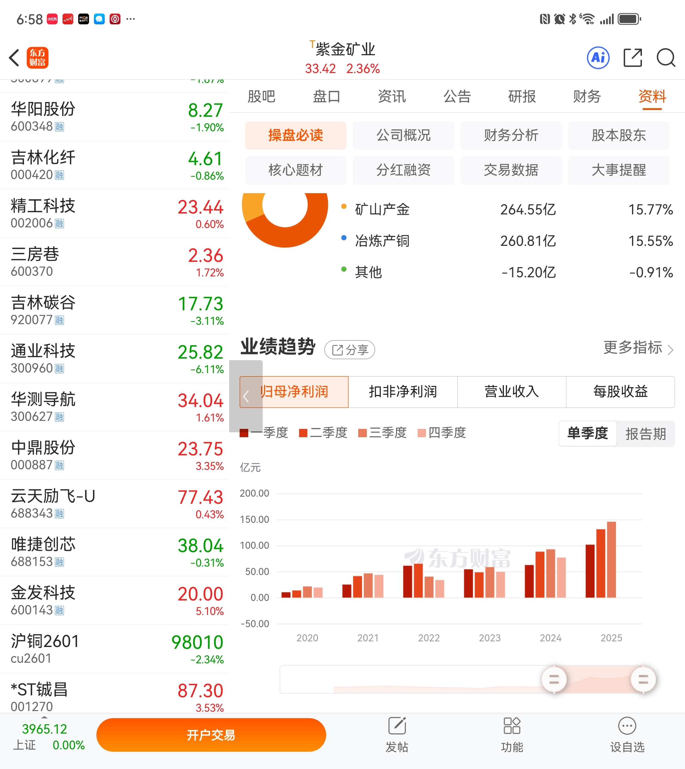 $紫金矿业(SH601899)$ 贯例,下面图片显示,紫金矿业每年第四季度利润都不及第三季,是因为年末到了许多费用都堆积在第四季度消化,如:职工奖金及福利的发放,为了保持业绩的序时进度公司有预留资金,造成了第四季度业绩不及第四季度,这季度实际利润应该200亿左右,今年第四季度金铜银以及碳酸锂价环比增长许多,造成第四第三季度基本持平,已经非常难得了,属于超预期范畴。