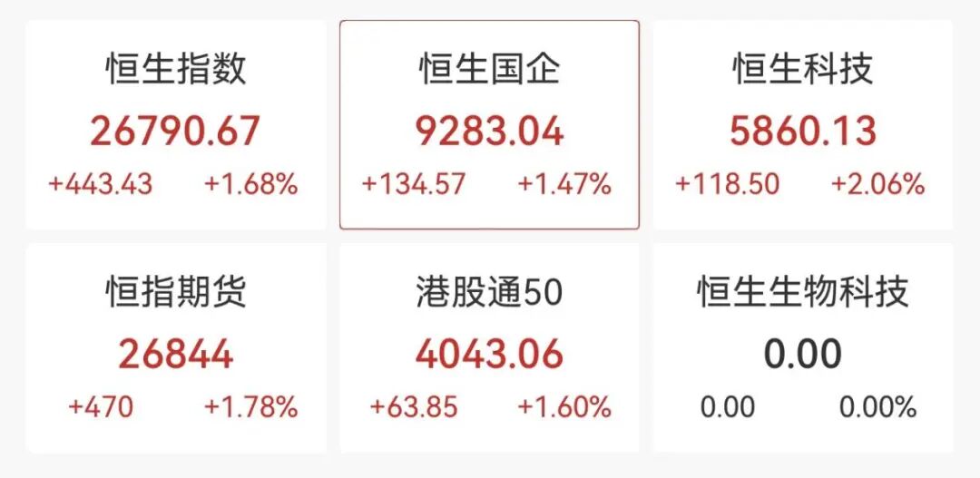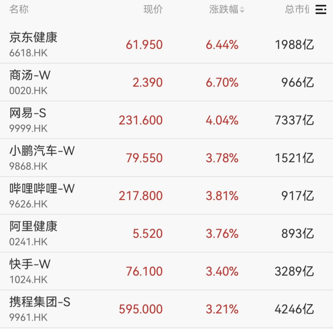 港股方面,恒生科技指数涨超2%,京东健康、商汤、网易等涨幅居前。
