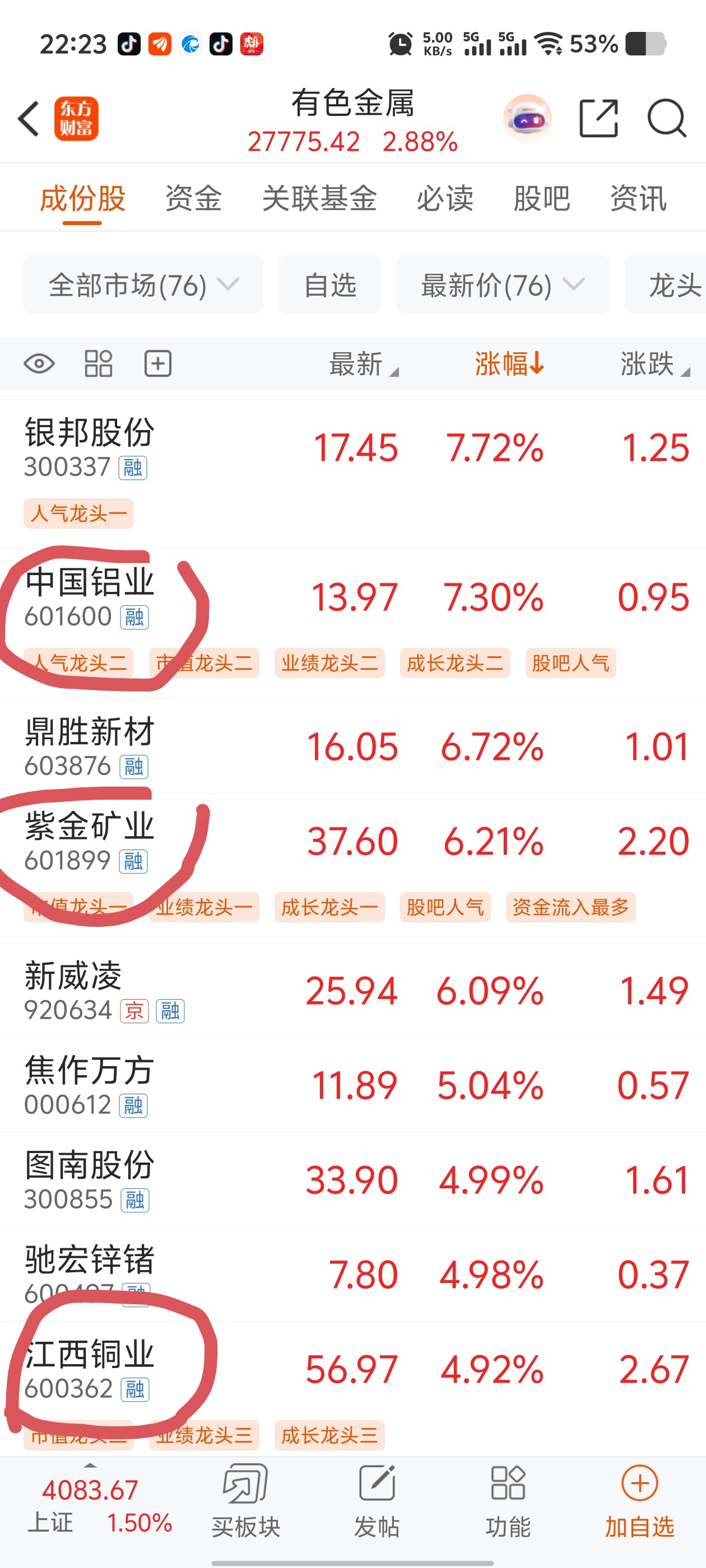买了行业前三,紫金矿业,江西铜业,中国铝业!坚定看好有色金属!
