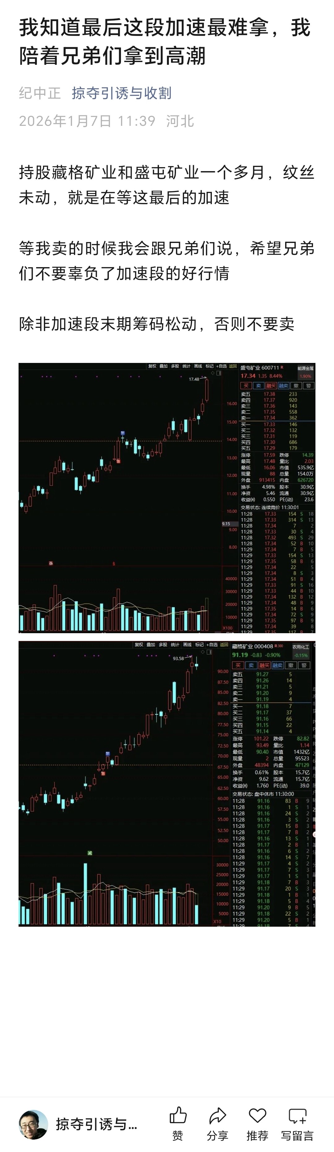$紫金矿业(SH601899)$ $洛阳钼业(SH603993)$ $北方铜业(SZ000737)$ 我知道最后这段加速最难拿,我陪兄弟们一起拿住,直到高潮!!