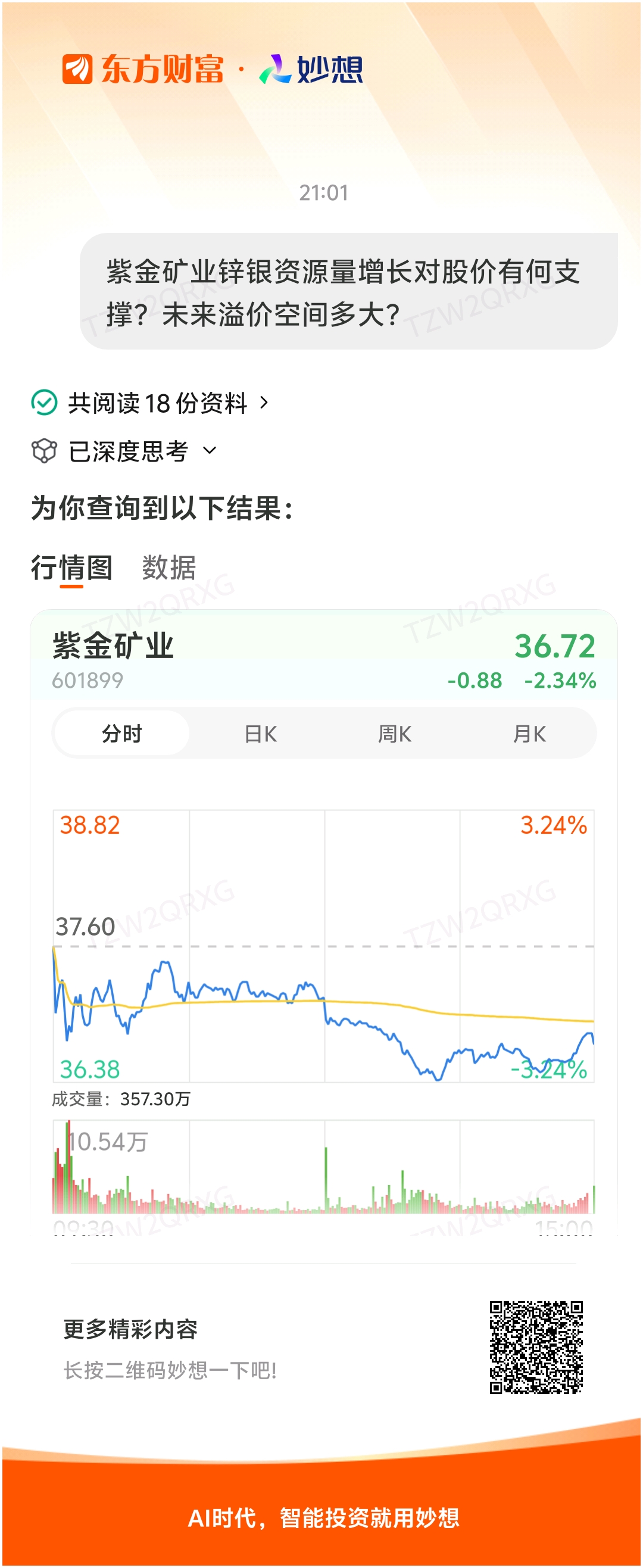 #@妙想,你怎么看?# 妙想一下:紫金矿业锌银资源量增长对股价有何支撑?未来溢价空间多大?