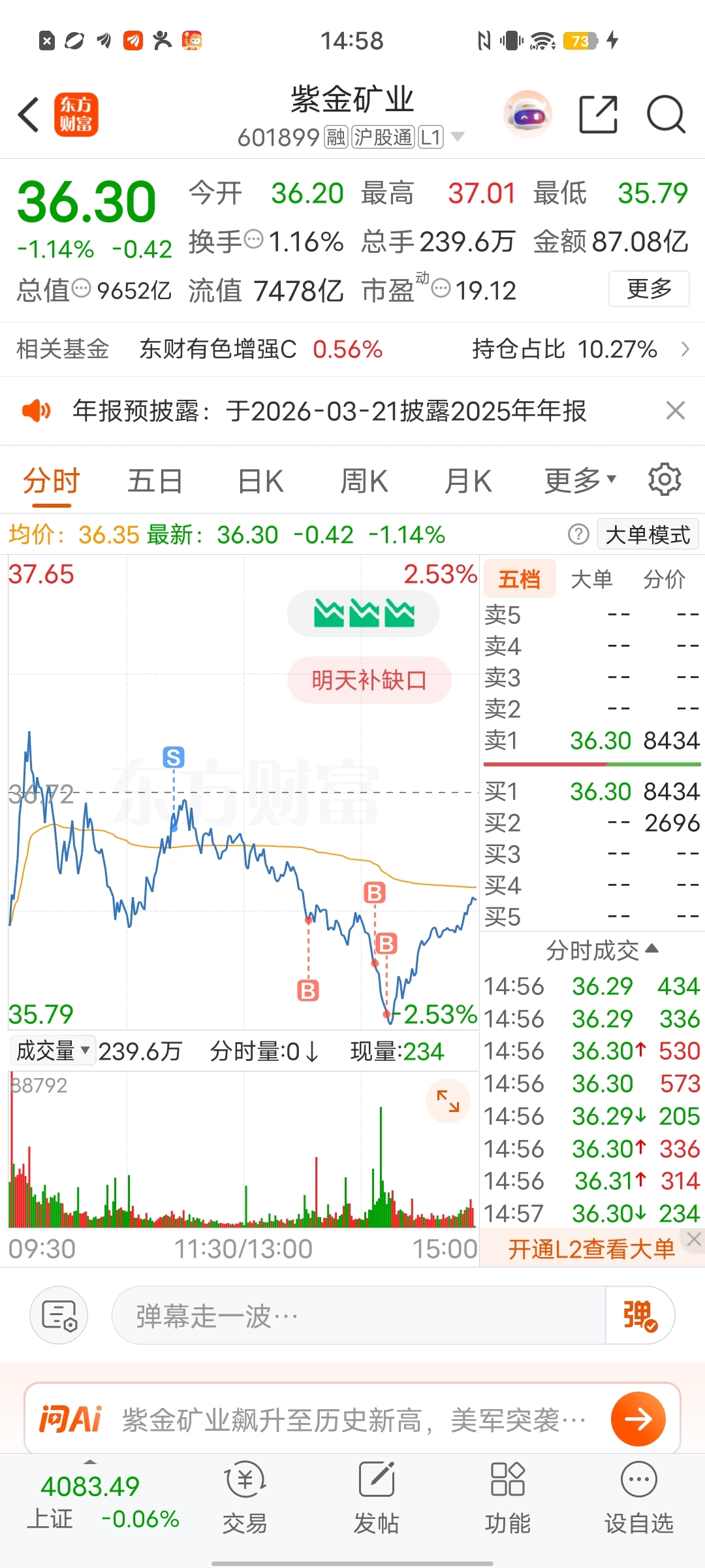 $紫金矿业(SH601899)$ 不要害怕,只是机构获利平仓跑了一些而已。消息面没啥坏的,发展就是离不开贵金属啊。而且公司之间的合作是提前说好价格了的,市场价格影响不大,你看他期货价格涨的时候涨了吗?今天我也开始学着做T,早上卖少了,应该多卖点