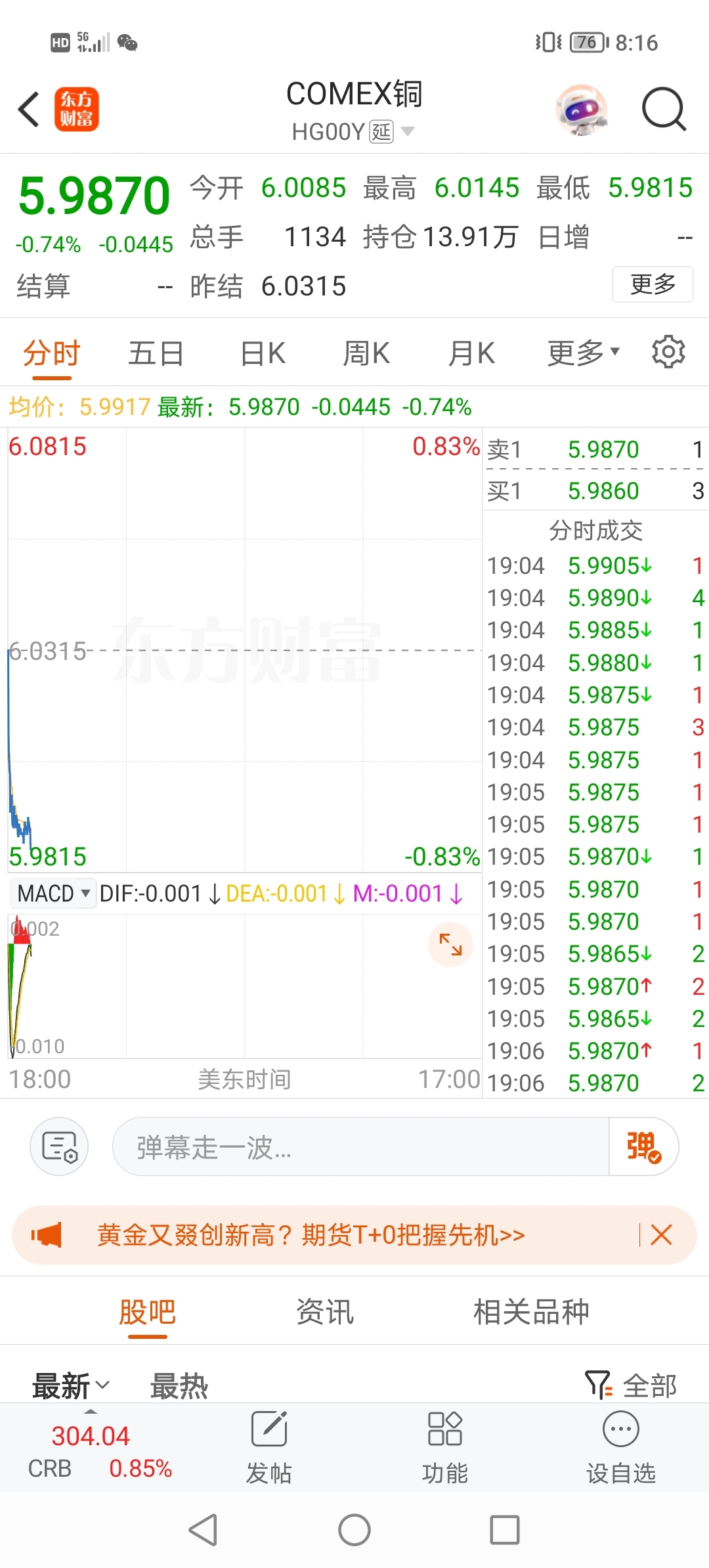 $紫金矿业(SH601899)$ 13日早盘,伦铜大幅低开下杀