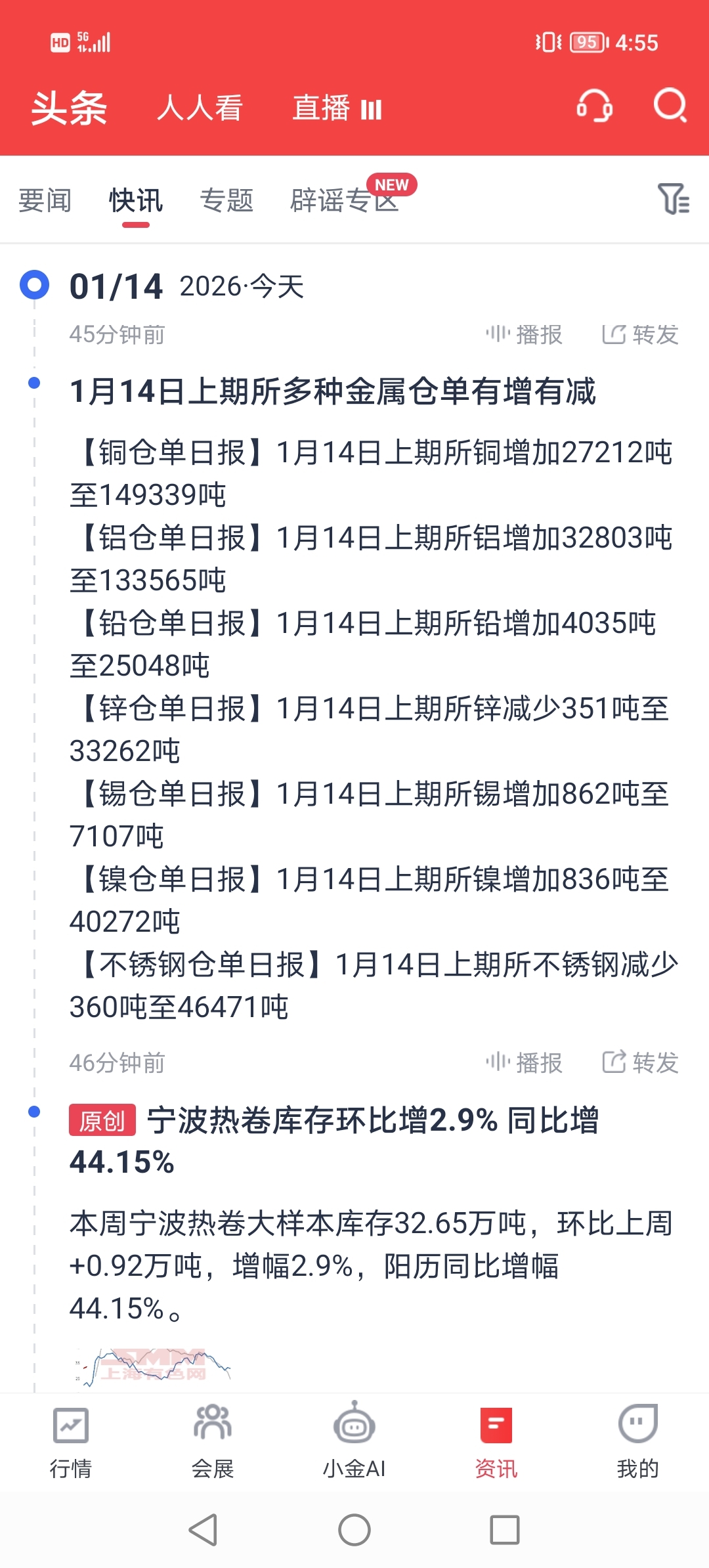 $紫金矿业(SH601899)$ 太夸张了!连期铜库存继续大幅增加,元月14号单日暴增两万七千多吨