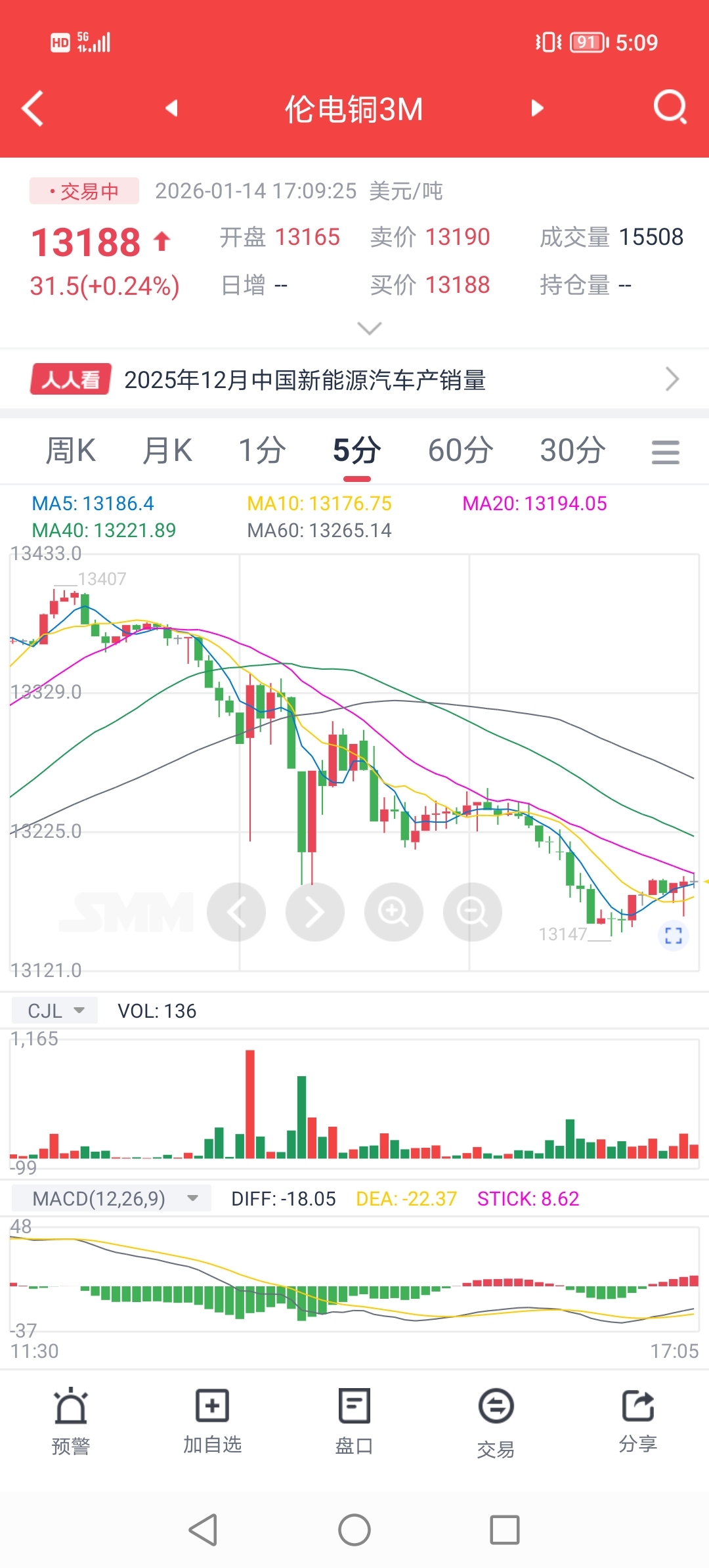 元月14日盘后,伦铜已大幅下杀超200美元