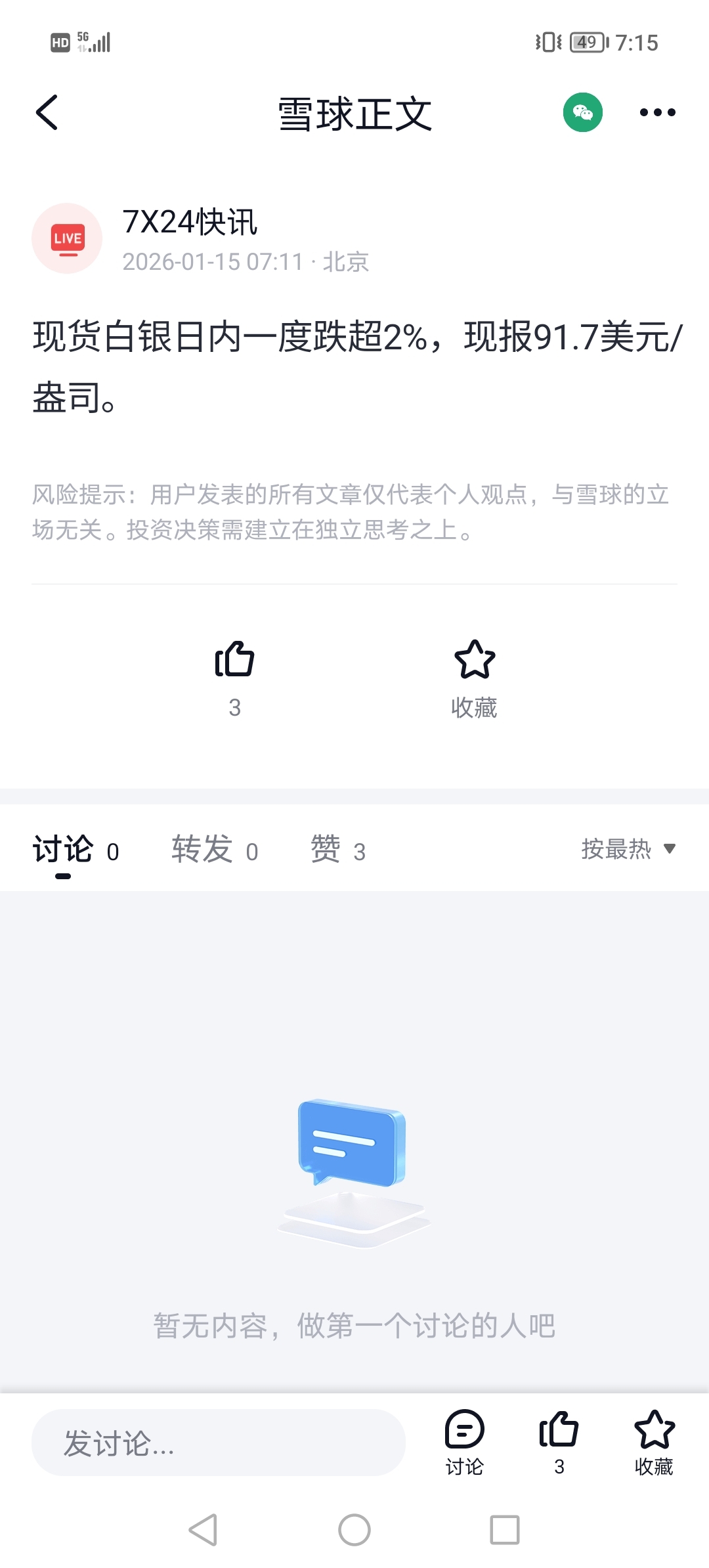 $紫金矿业(SH601899)$ 15日早盘,白银开盘大跌