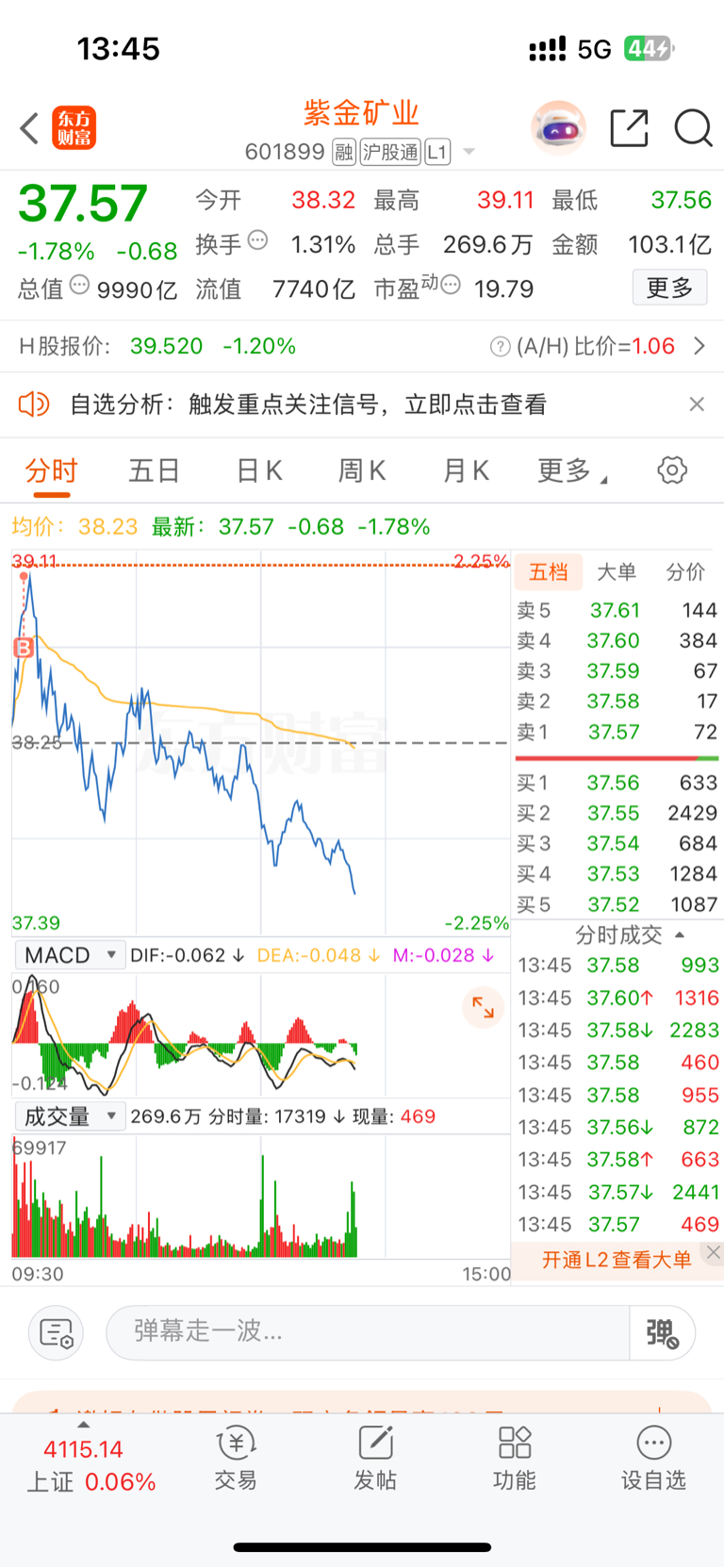 $紫金矿业(SH601899)$ 哈哈哈,开心,买到龙头了