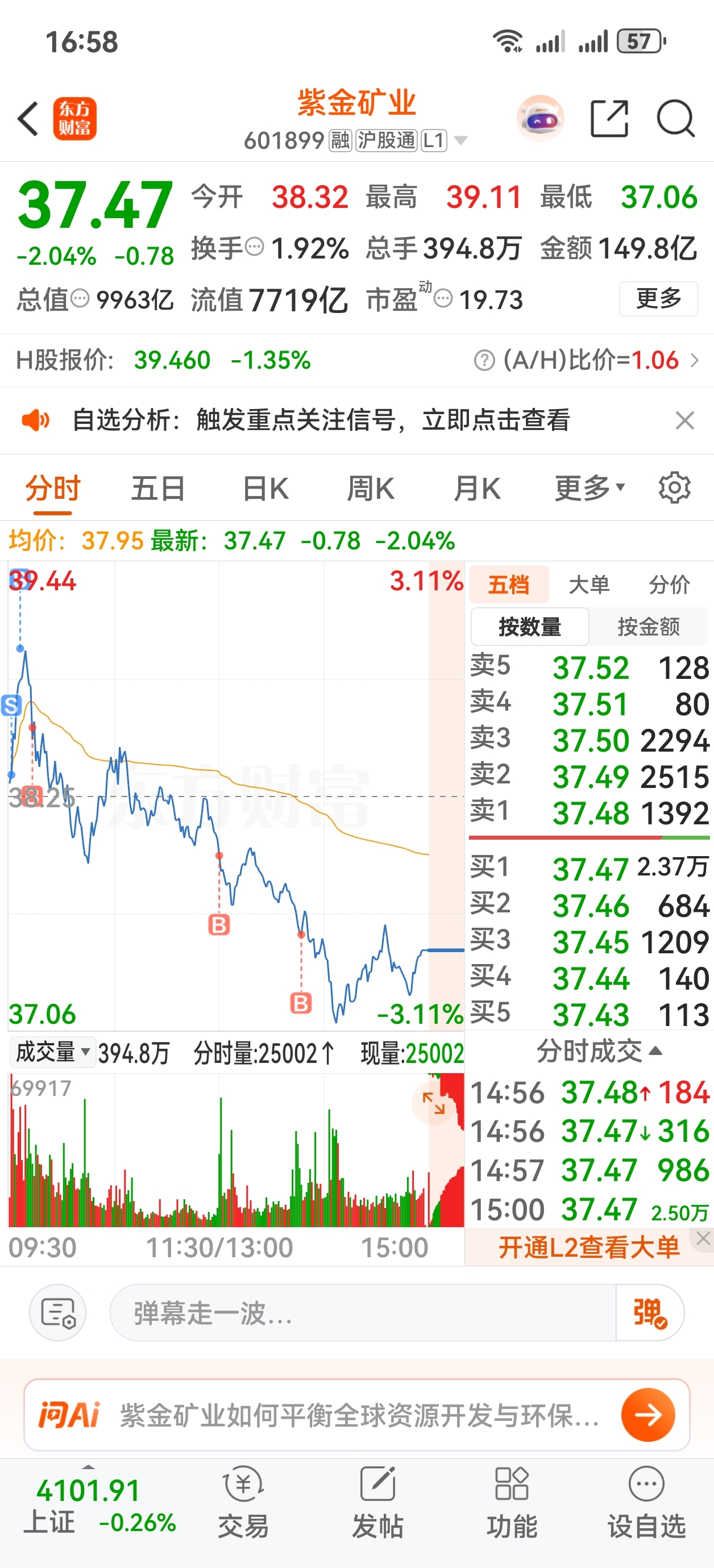 $紫金矿业(SH601899)$ 做了两个t,37.55补仓,水平不高,但也知足喽