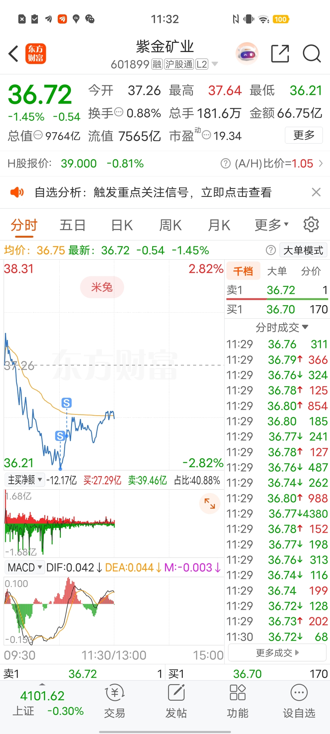 $紫金矿业(SH601899)$ 果然在卖了之后就是希望跌下去接回来心态完全不一样,今天操作变形了,卖在最低点,哭了