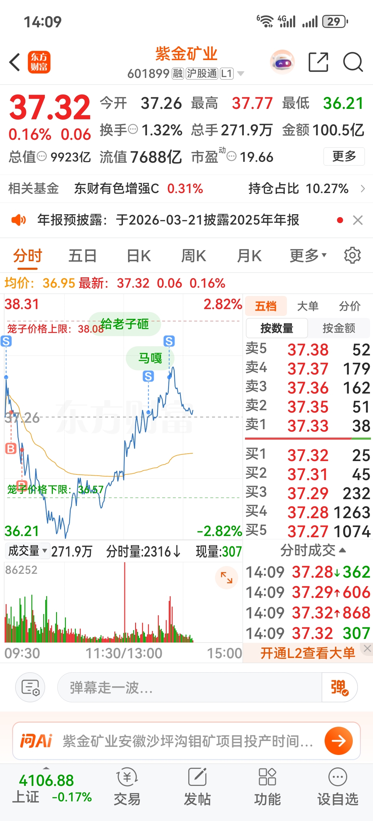 $紫金矿业(SH601899)$ 知足才能常乐,没有在低位加仓确实可惜,但不必懊恼,否则每天都会生活在遗憾中