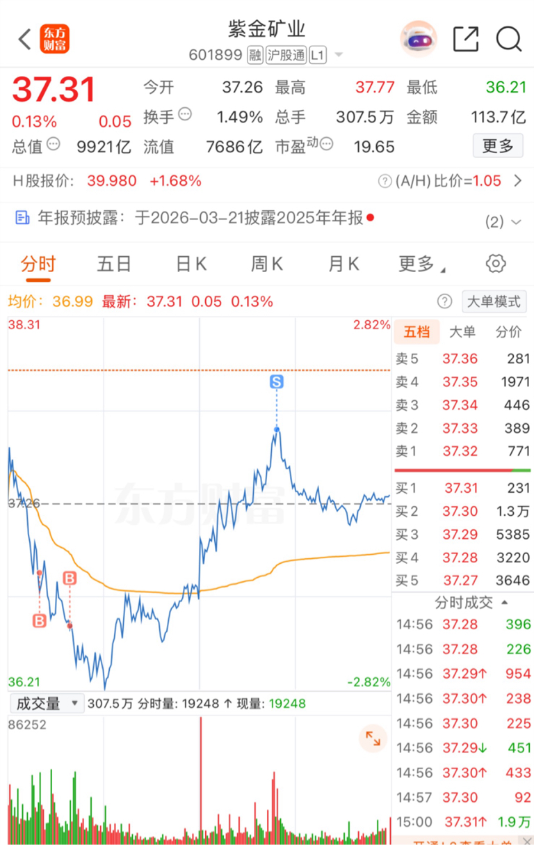 $紫金矿业(SH601899)$ 继续t,毕竟我还挂在树上下不来