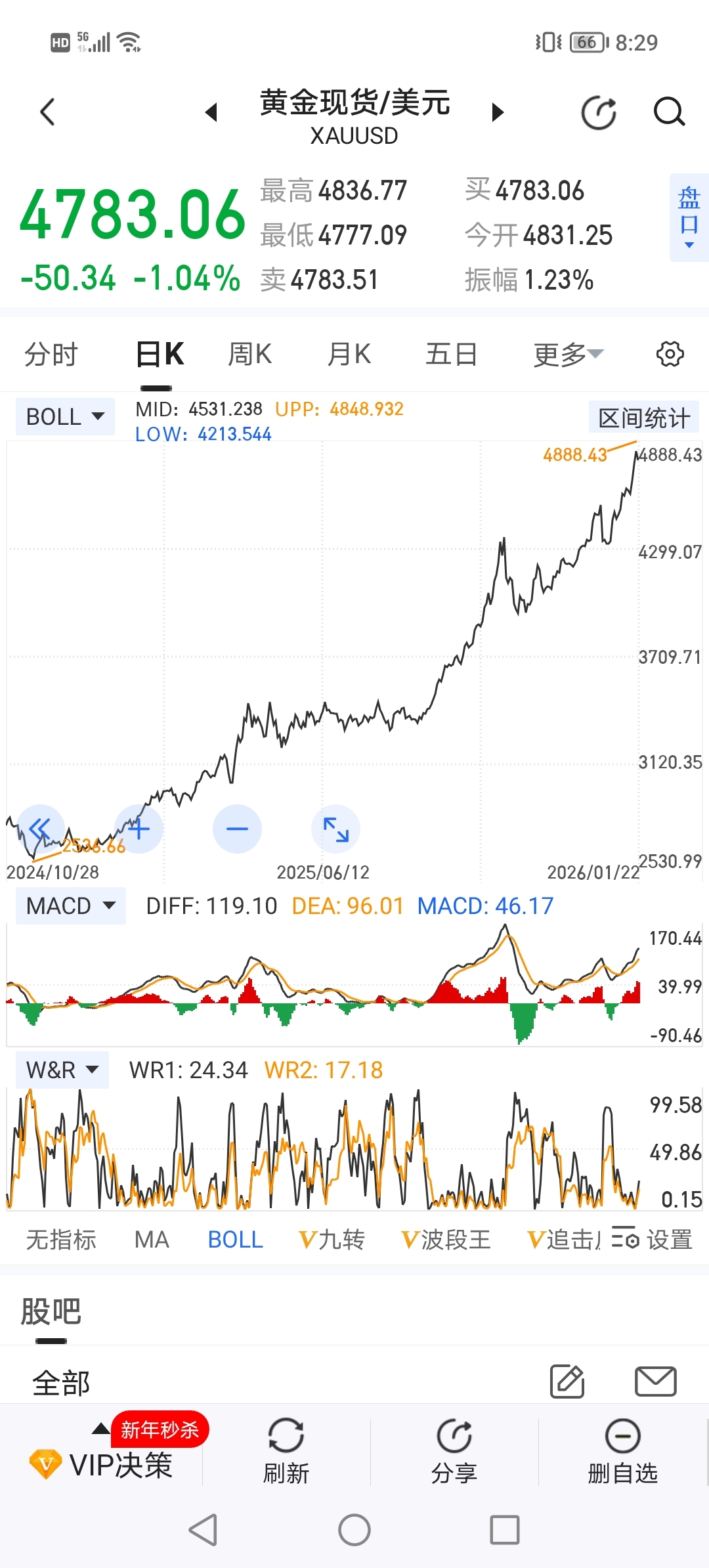 $紫金矿业(SH601899)$ 黄金日线已构筑完全第三次超级顶背离!历史大顶必出现在3~5次