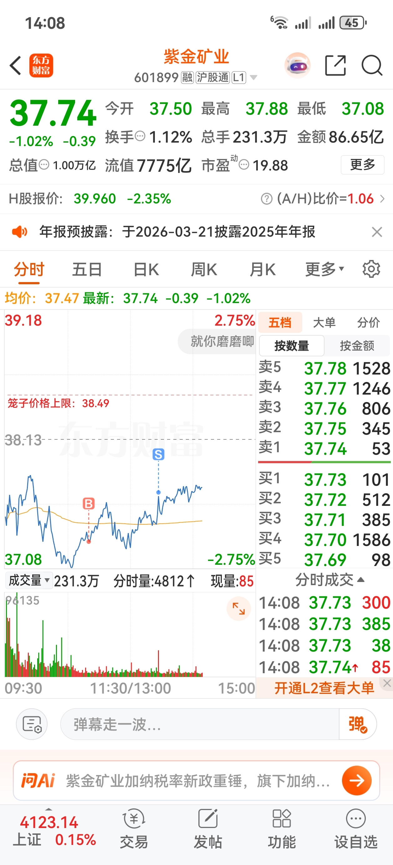 $紫金矿业(SH601899)$ 早上挂37.03没买进,最后37.30买进来