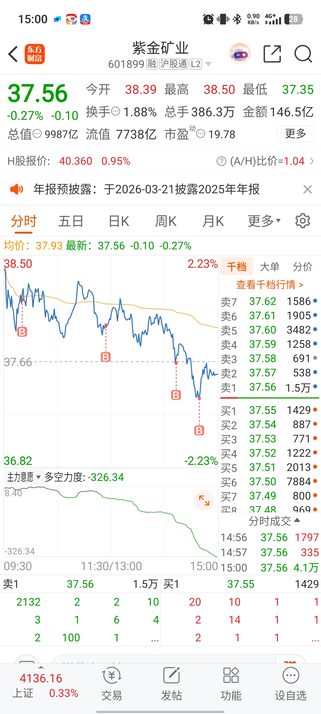 $紫金矿业(SH601899)$ 逢买必跌,一直加仓,这次不当韭菜了,死拿