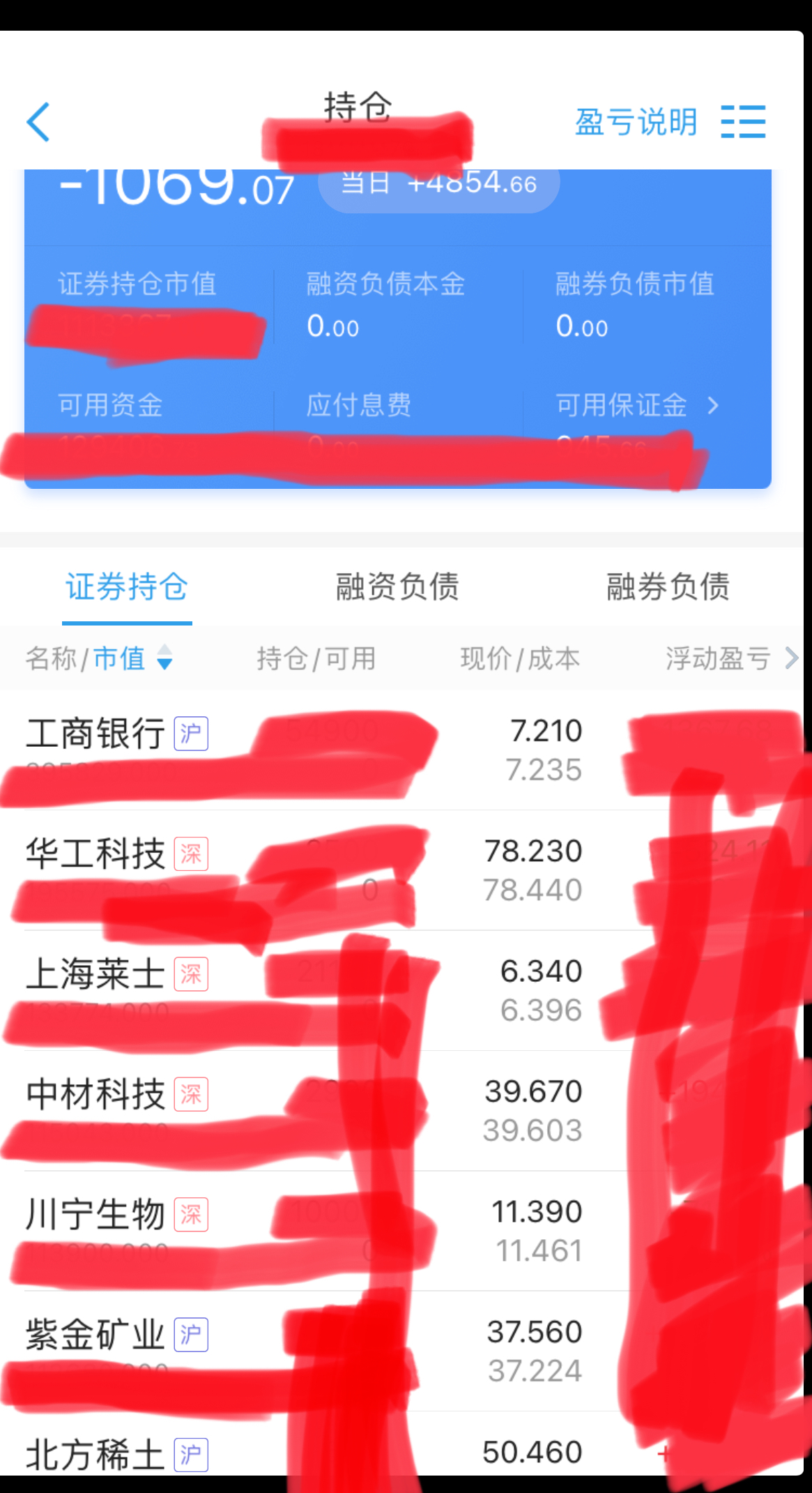 老牛收盘单,八成仓,,工行多,,没融资,再跌就上杠杠,这是现在持股,今天又没亏