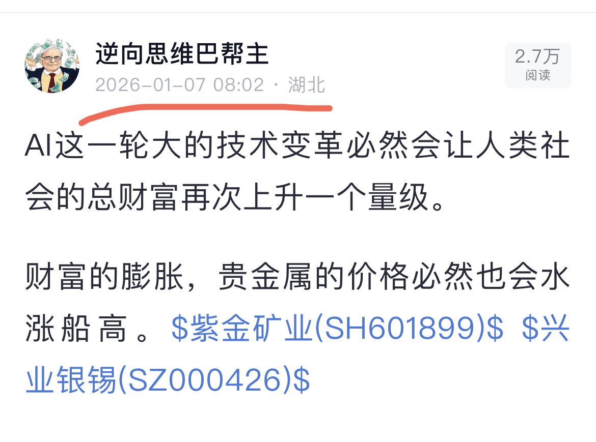 $紫金矿业(SH601899)$ $兴业银锡(SZ000426)$ $赤峰黄金(SH600988)$ AI这一轮大的技术变革必然会让人类社会的总财富再次上升一个量级。