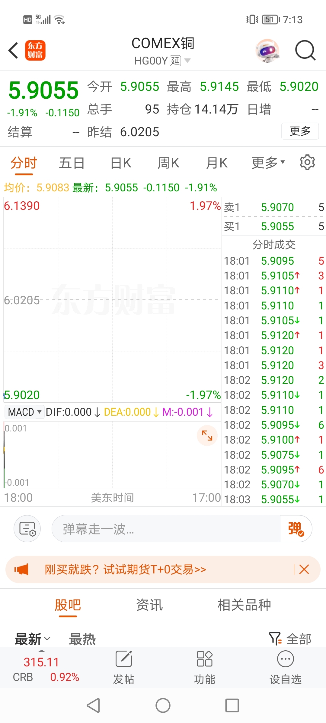 27日早盘,美铜开盘继续大跌近2%,有图有真相