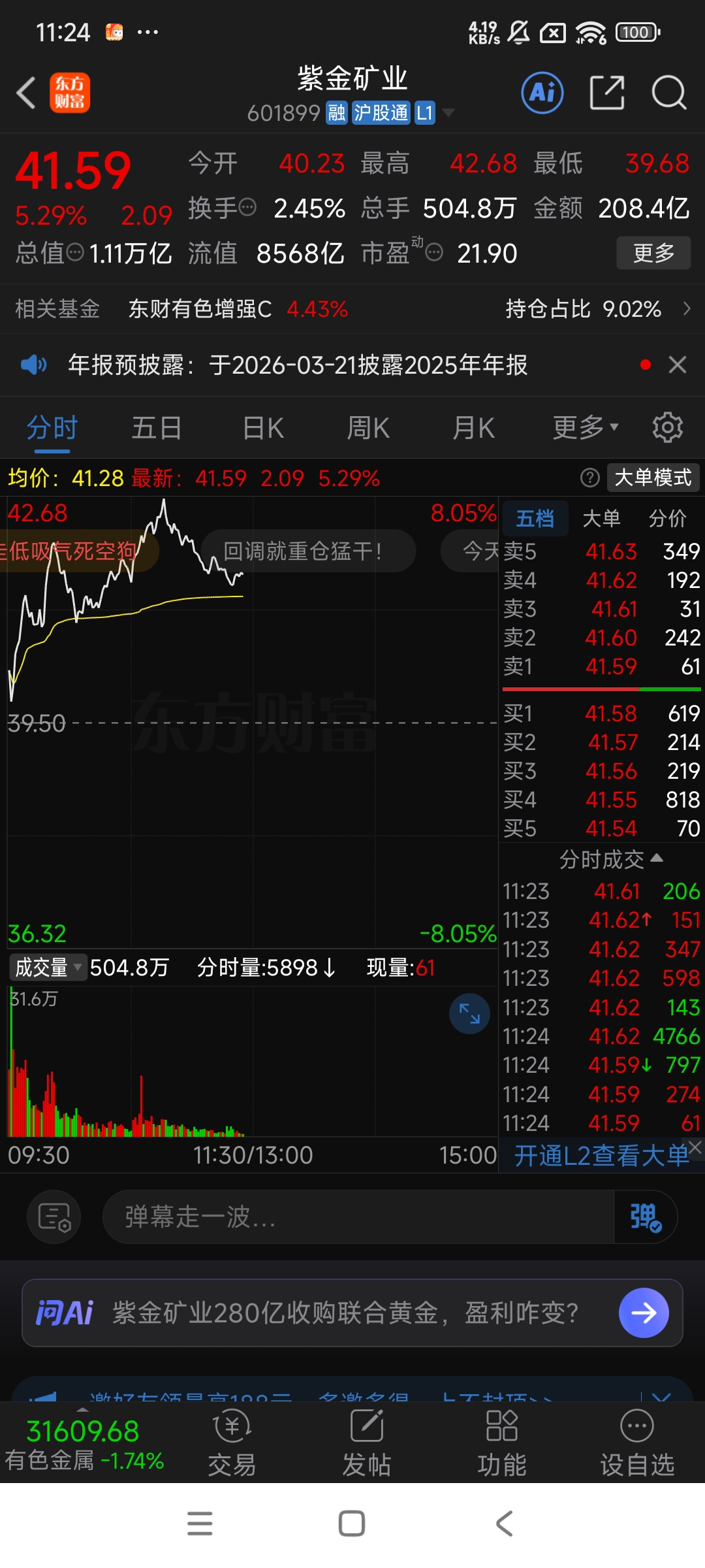$紫金矿业(SH601899)$ 卖吧,肯定要跌破黄线