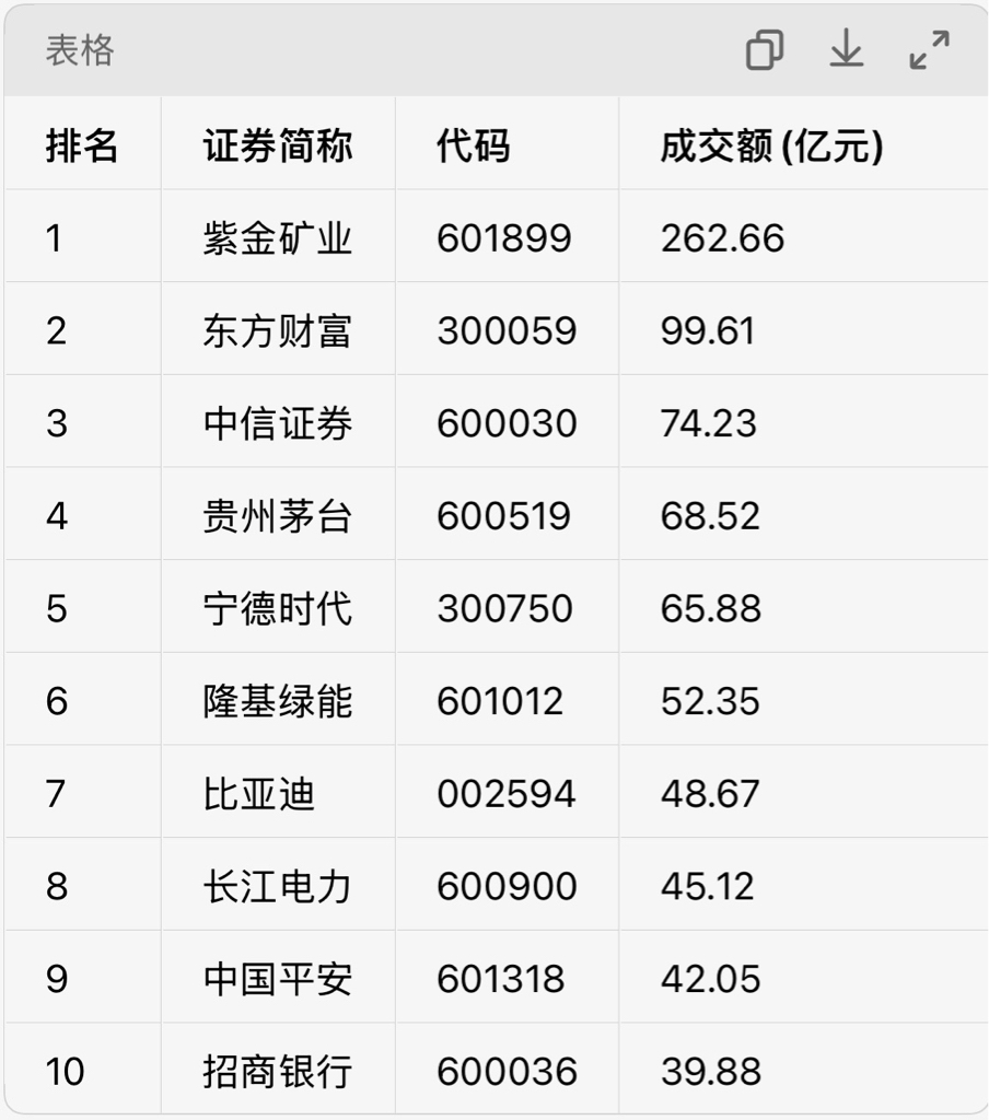 1月的A股成交额榜单,紫金矿业始终占据潮头,不仅多次登顶单日成交额榜首,昨天更是交出了262.66亿天量成交,总市值再次突破万亿,甚至今日一度超过了1.1万亿。