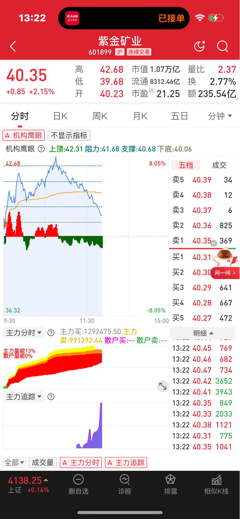 $紫金矿业(SH601899)$ 主力在低吸 你们看看
