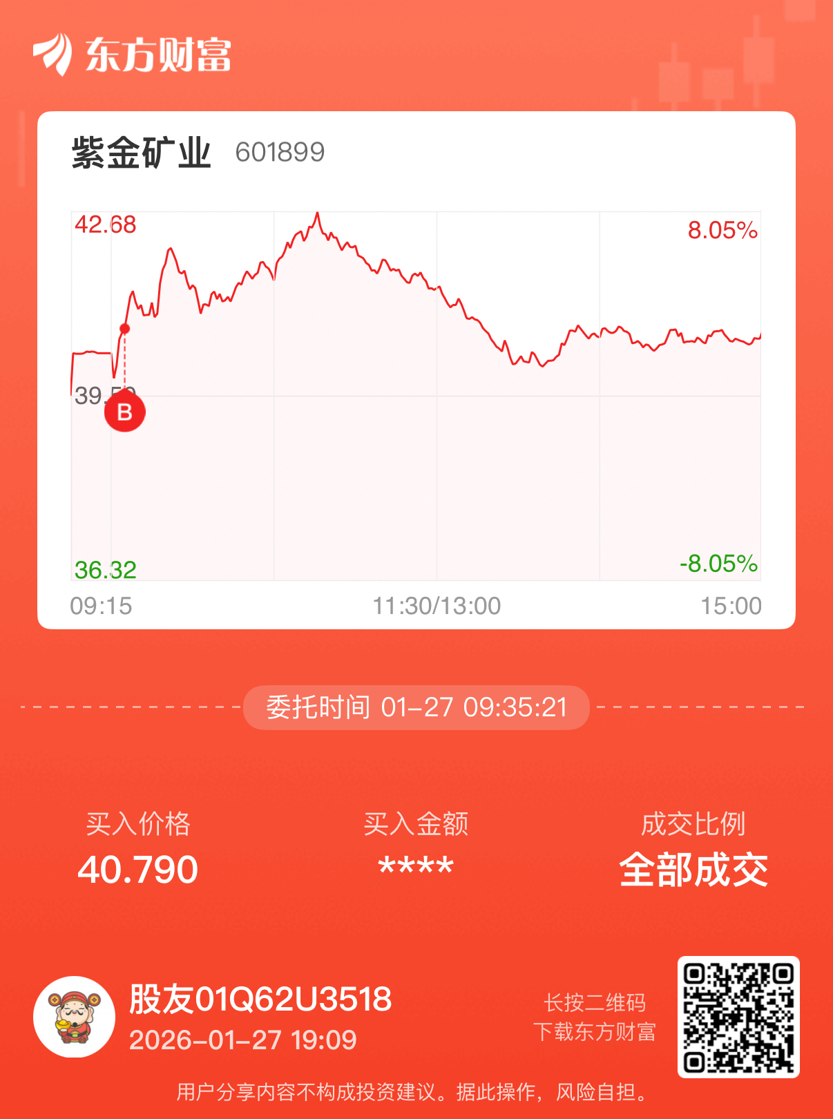 温馨提示: 1.根据《证券法》规定,禁止编造、传播虚假信息或者误导性信息,扰乱证券市场;2.用户在本社区发表的所有资料、言论等仅代表个人观点,与本网站立场无关,不对您构成任何投资建议。用户应基于自己的独立判断,自行决定证券投资并承担相应风险。《东方财富社区管理规定》