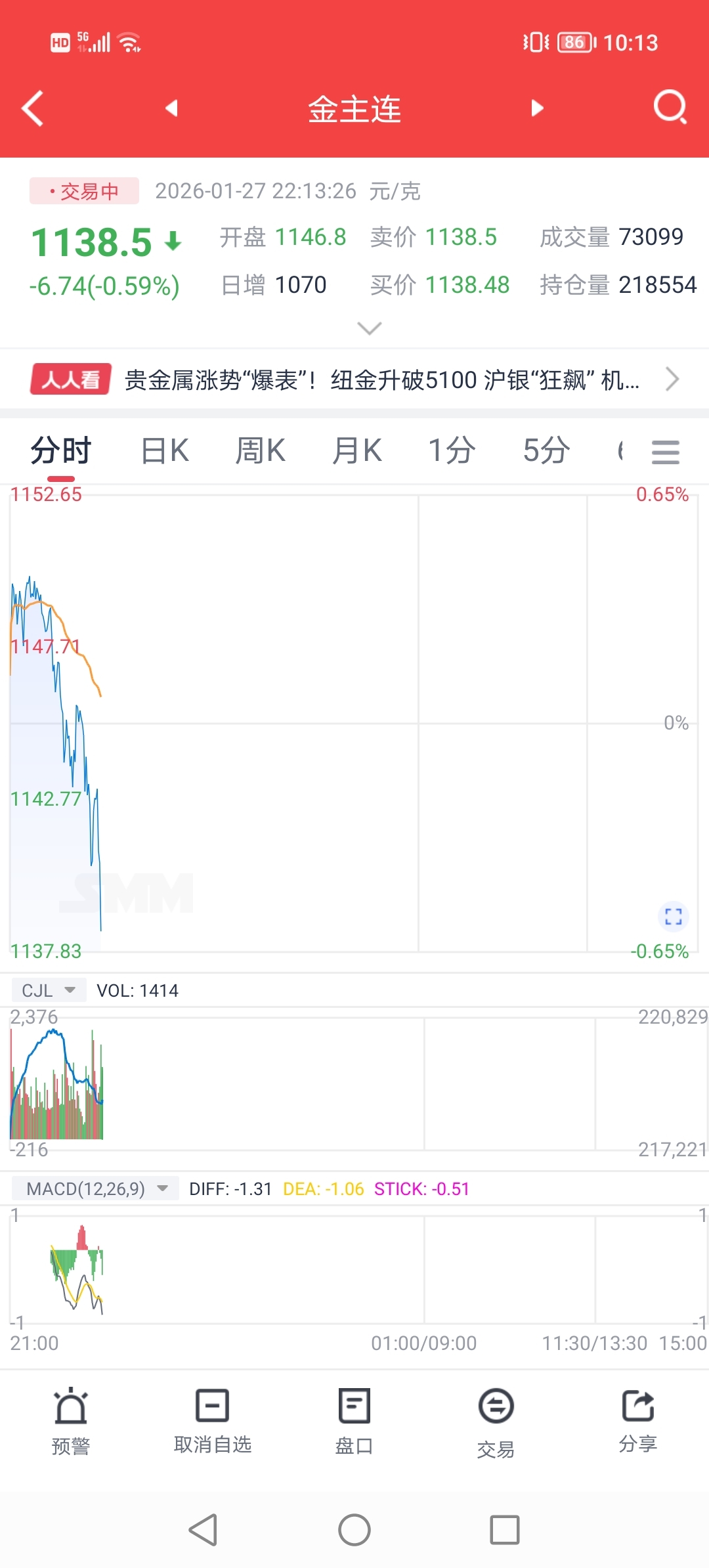 $紫金矿业(SH601899)$ 27日夜盘,沪金大跌