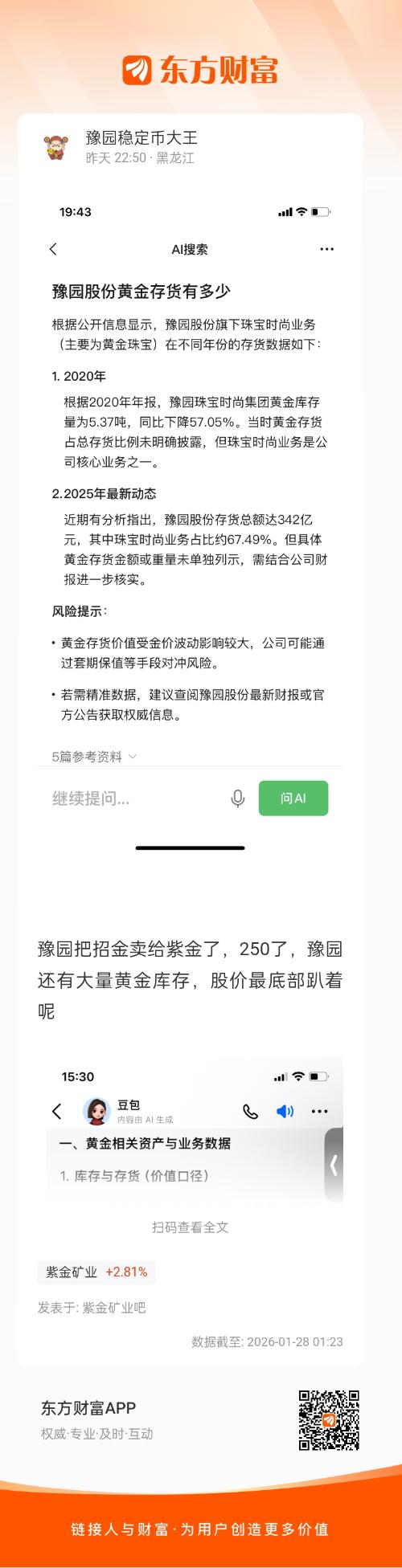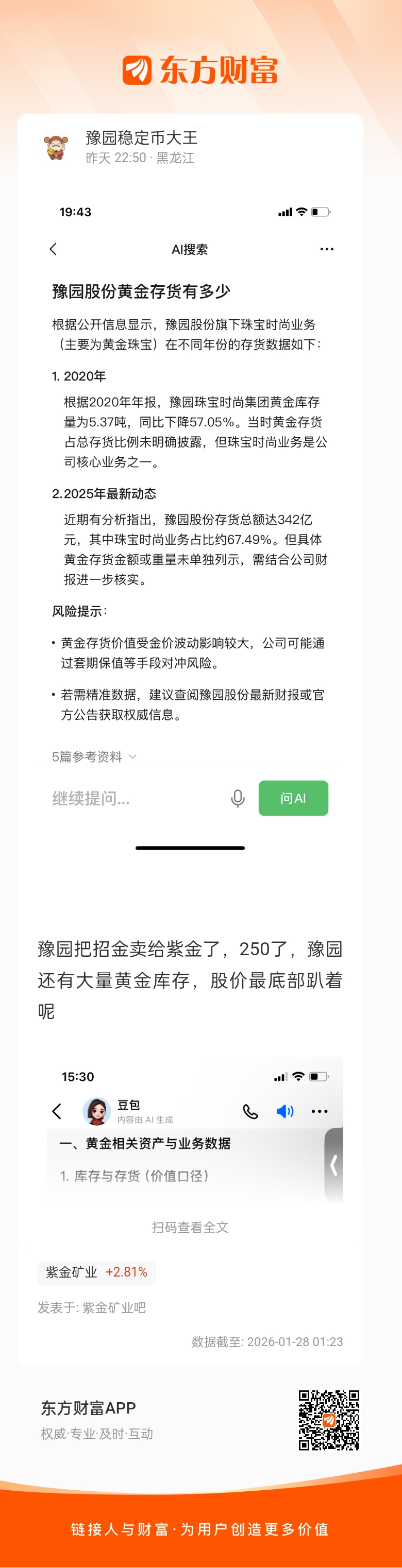 豫园把招金卖给紫金了,250了,豫园还有大量黄金库存,股价最底部趴着呢