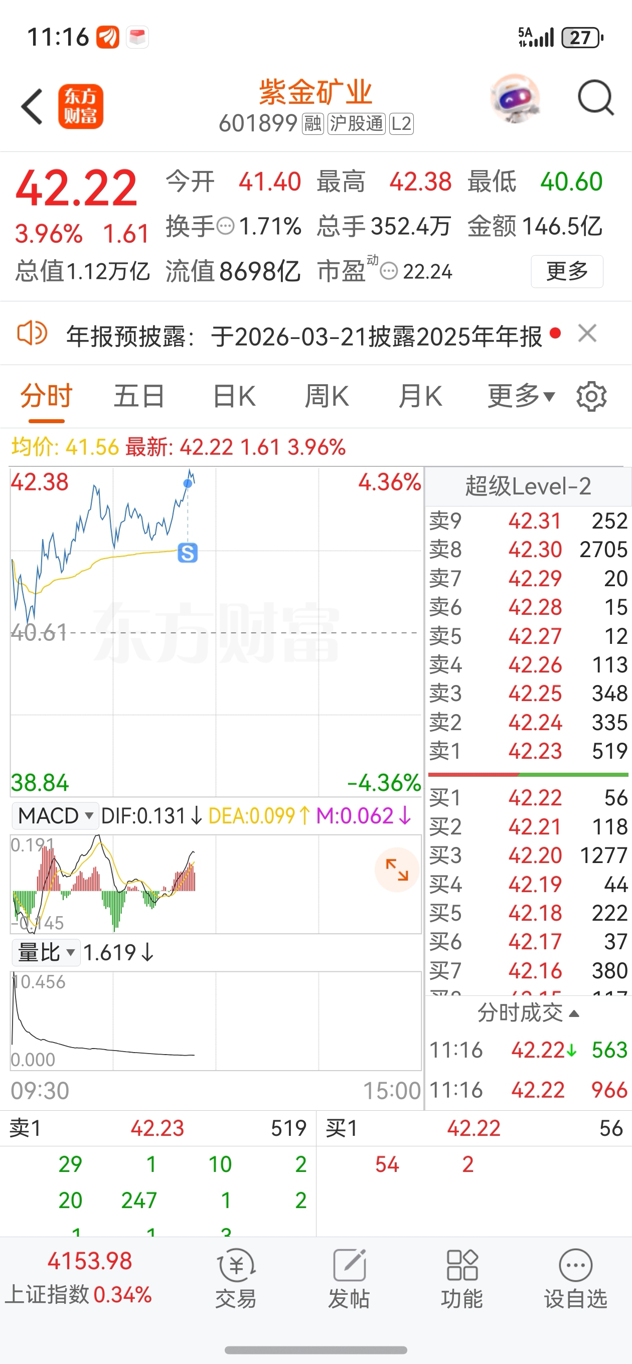 $紫金矿业(SH601899)$ 看看今天能不能做个反T。