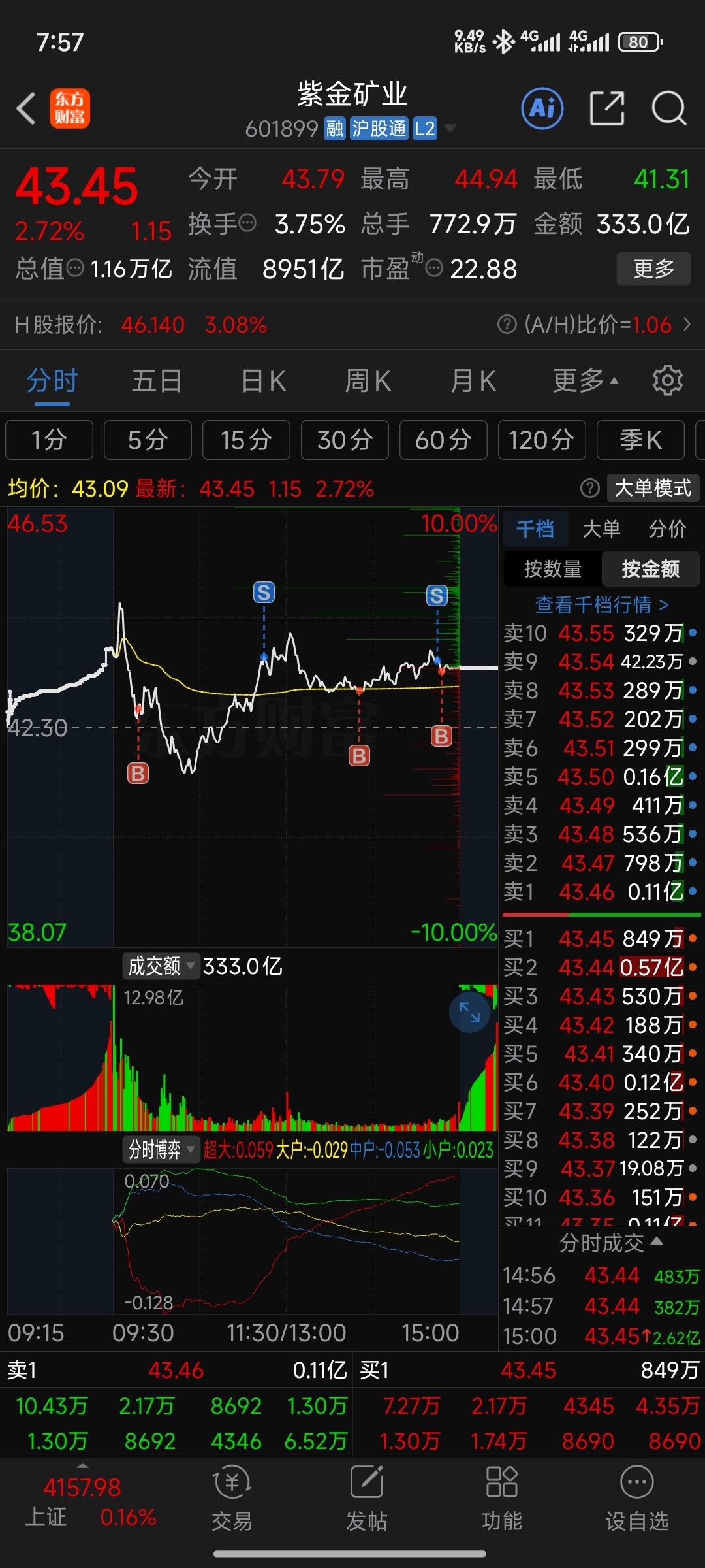 $紫金矿业(SH601899)$ 全仓换一下筹码