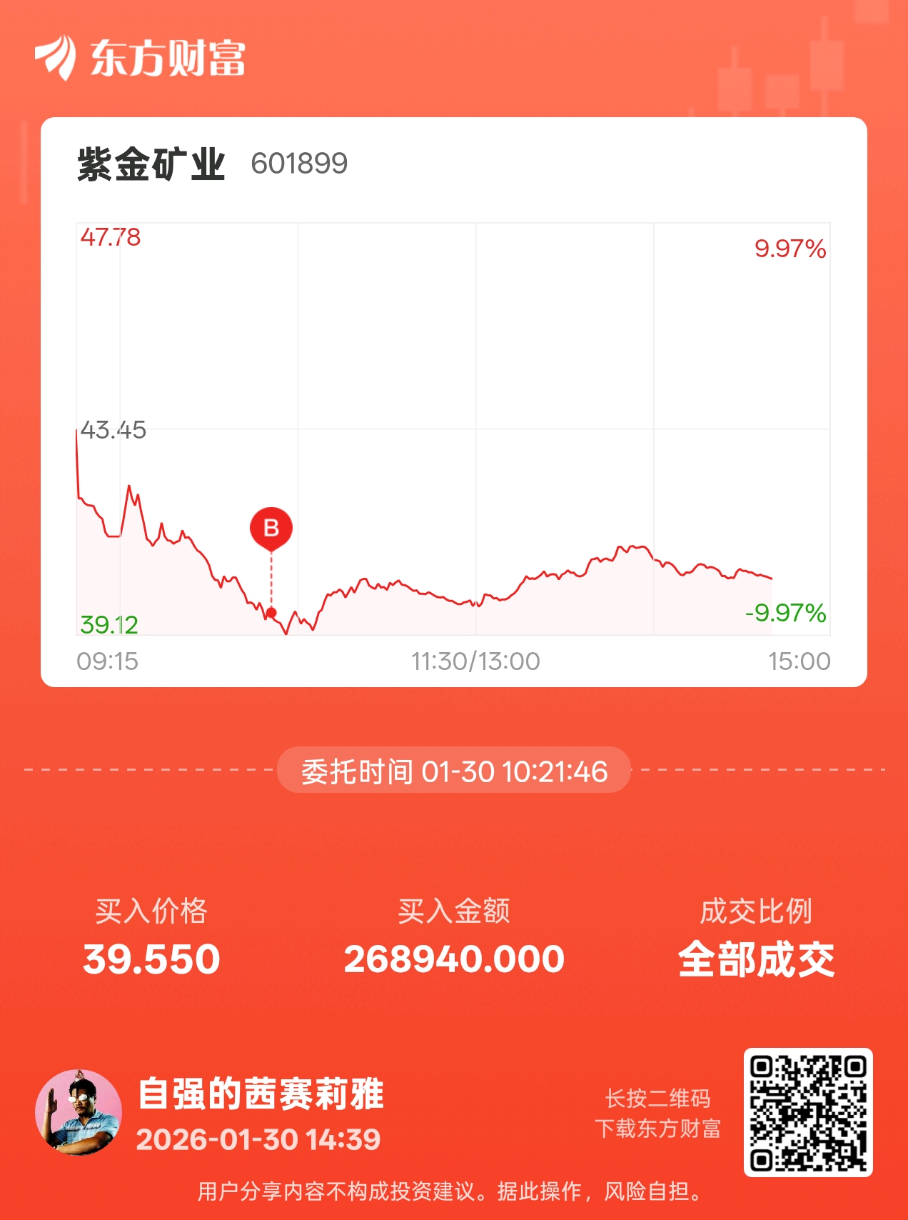 $紫金矿业(SH601899)$ 马不得夜草不肥 人不得横财不发 重仓 猛干!