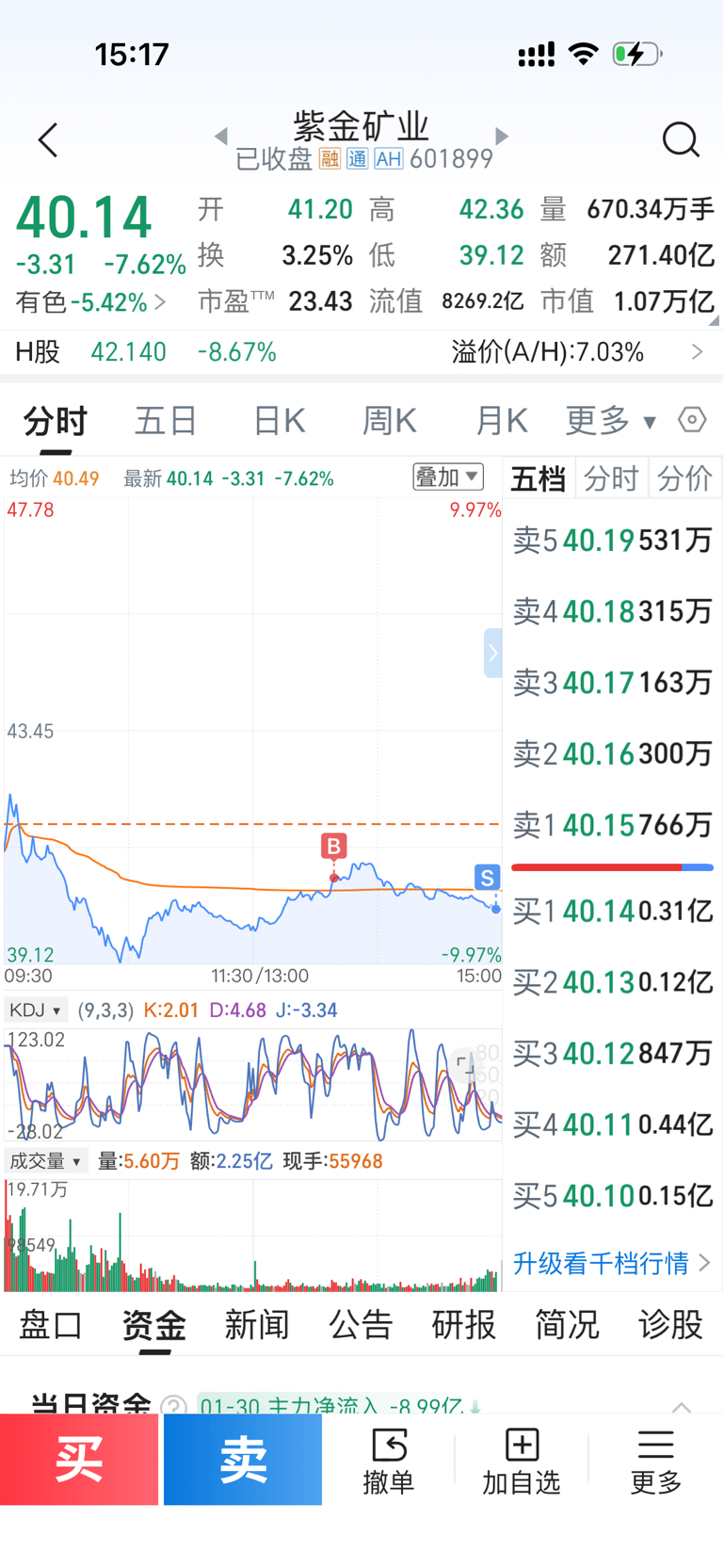 $紫金矿业(SH601899)$ 想做个t做反了