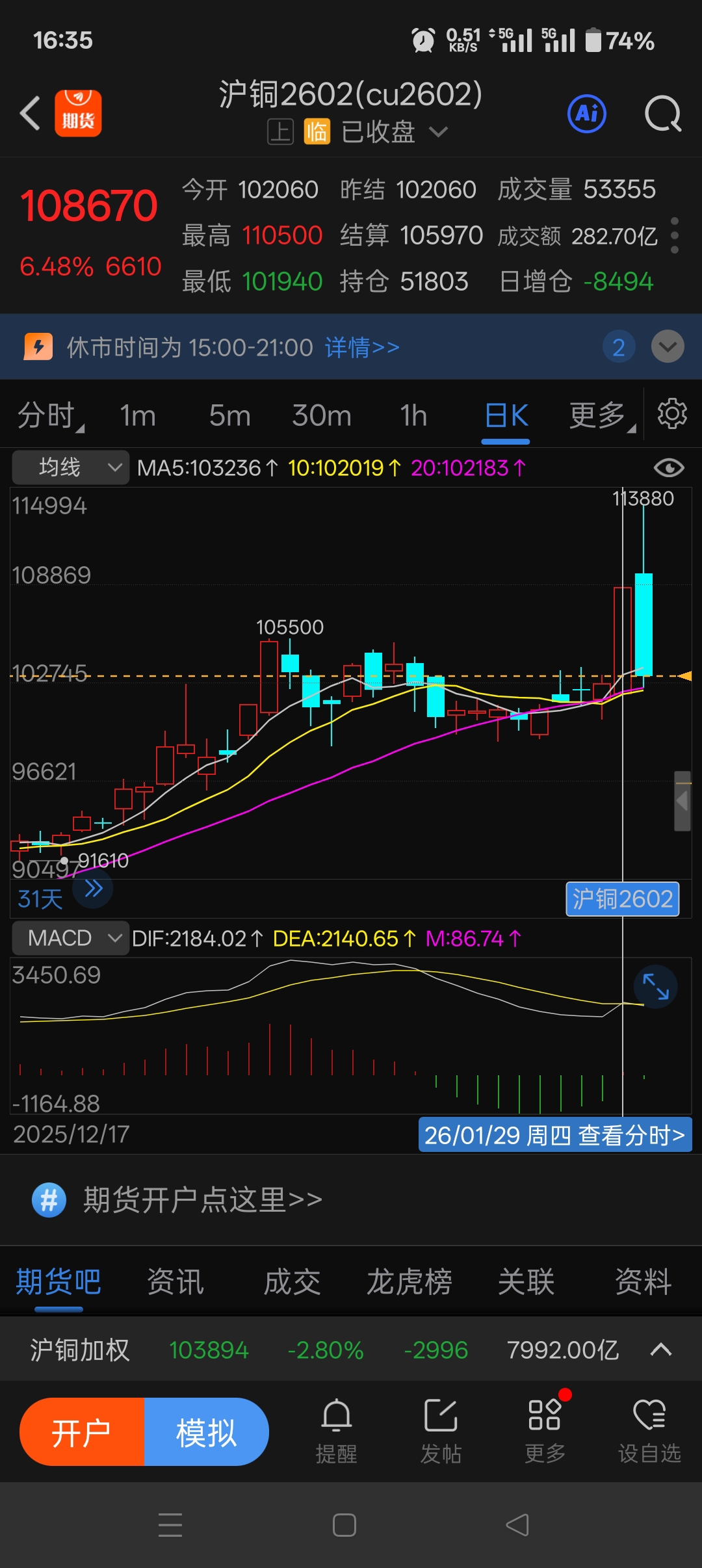 $紫金矿业(SH601899)$ 昨天晚上期货铜大涨啊,今早开盘新高!怎么跌成这样?什么原因