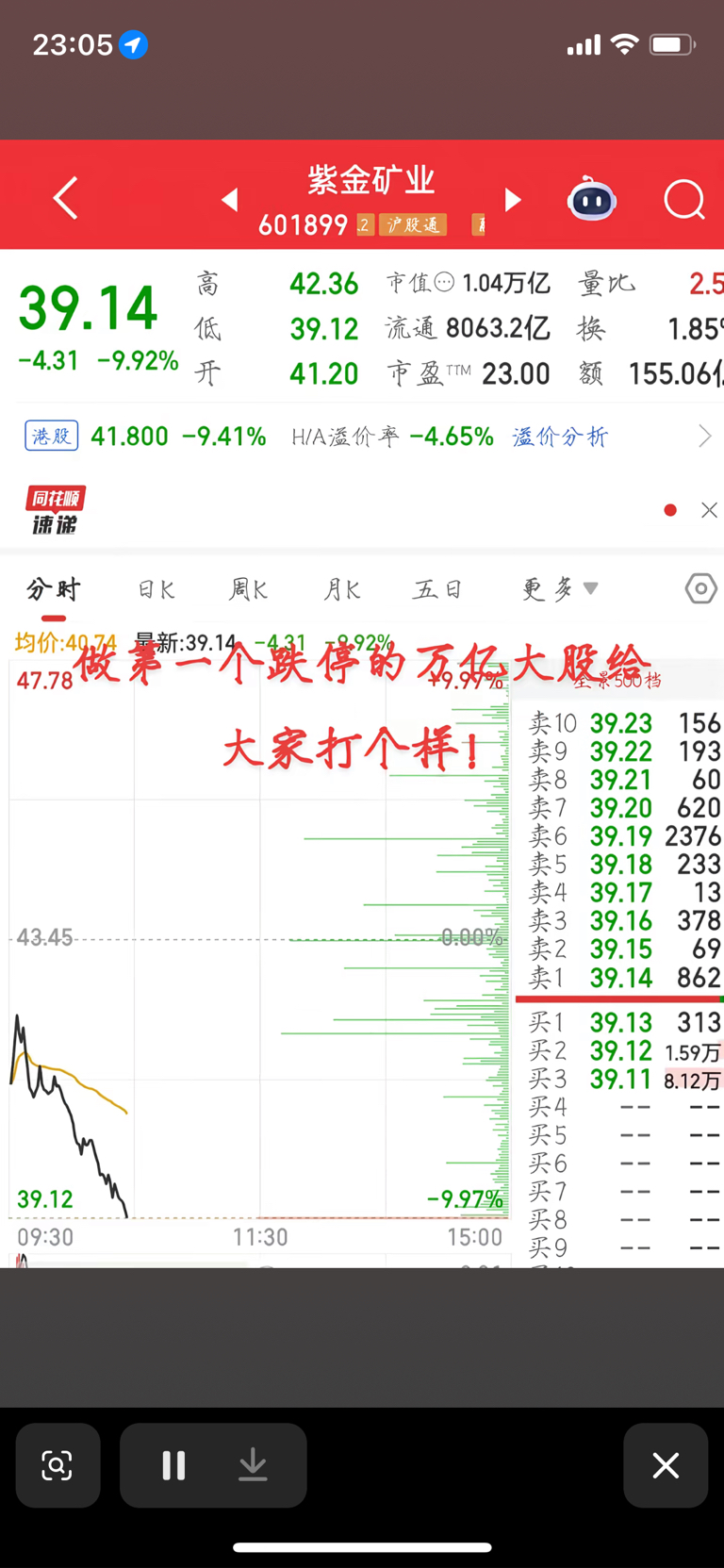 $紫金矿业(SH601899)$ 紫金矿业敢争先,做全球第一个-10%跌停的大A万亿股票。让全球投资者争相围观,看懂大A万亿股如何量化控盘,收割全场。