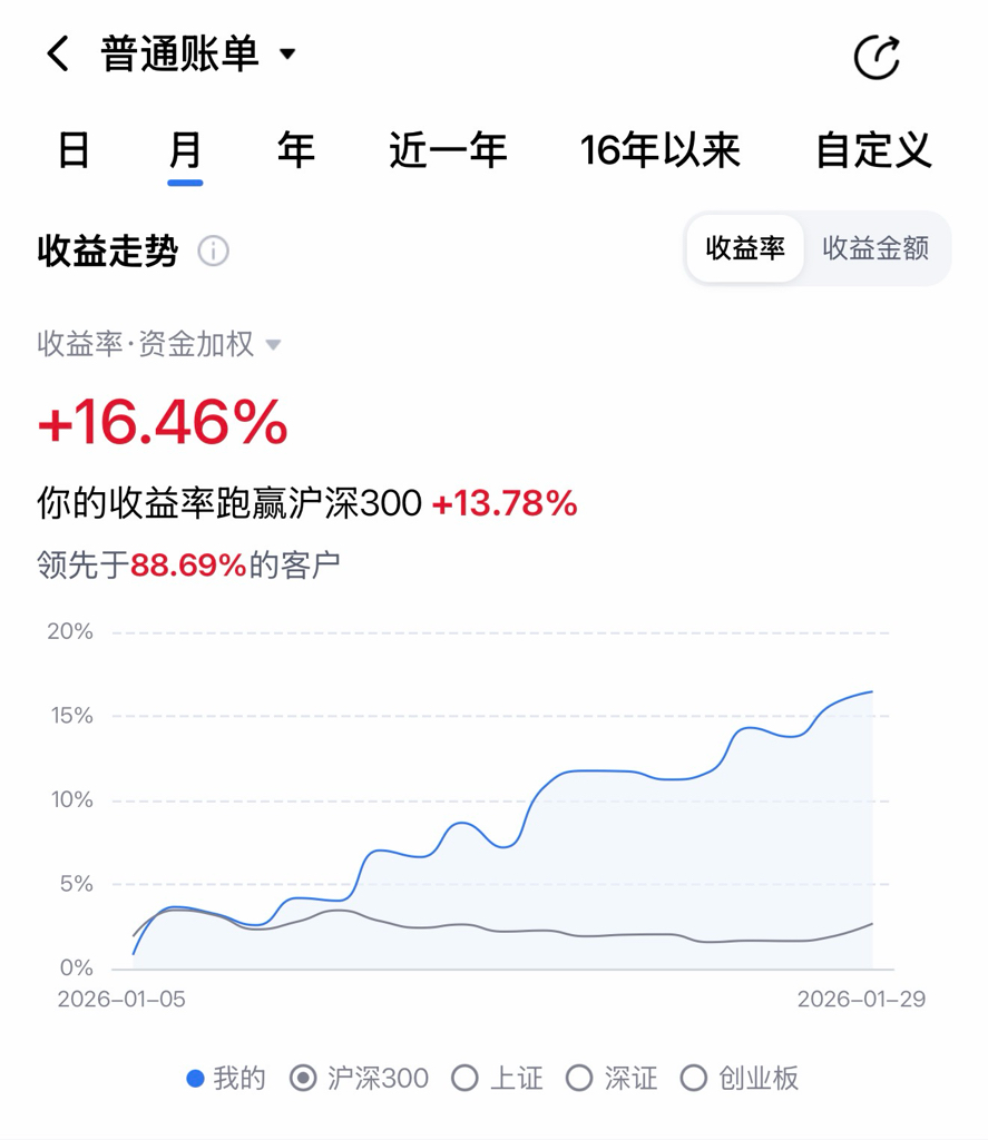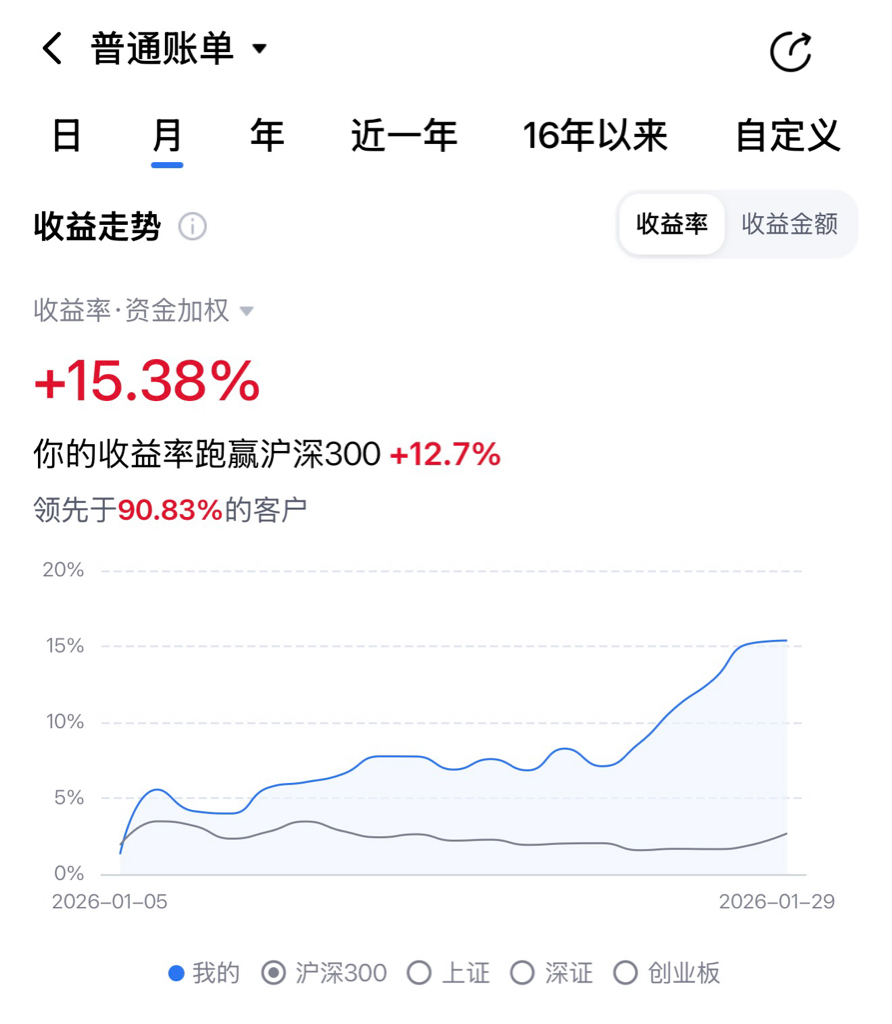 一月收官,三个账户还是分别拿下16%、15%、12%的收益率,虽然最后一个交易日有了大幅回撤,但复盘下来核心就一句话:产业逻辑不坍,趋势就不会断,市场从来不会亏待守得住核心的人。