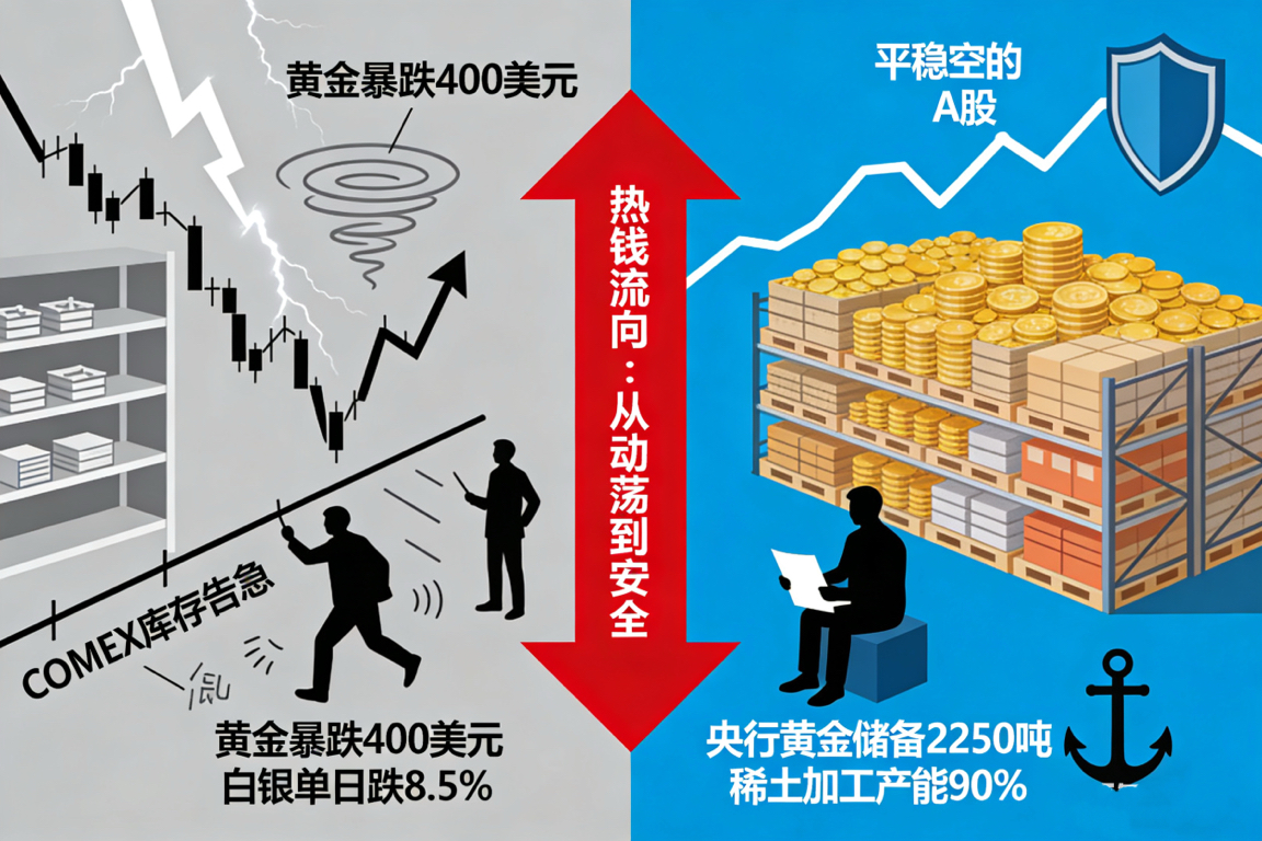 3月是交割旺季,违约恐慌一炸锅,高杠杆多头连夜踩踏平仓,黄金半小时暴跌400美元,白银单日狂跌8.5%,连美股都跟着跳水。