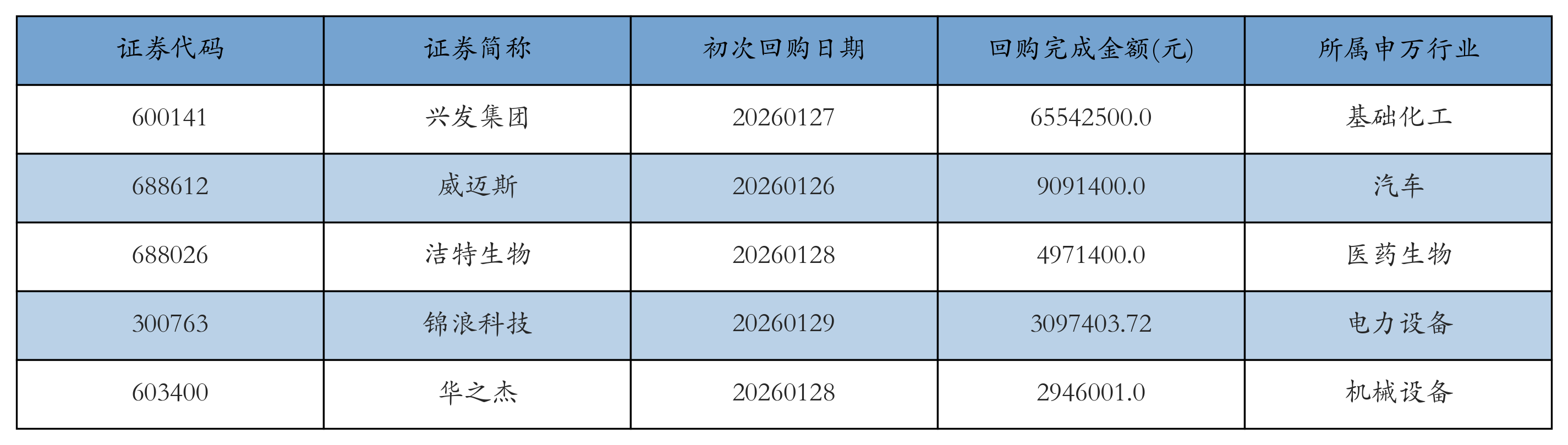 五、上市公司回购金额