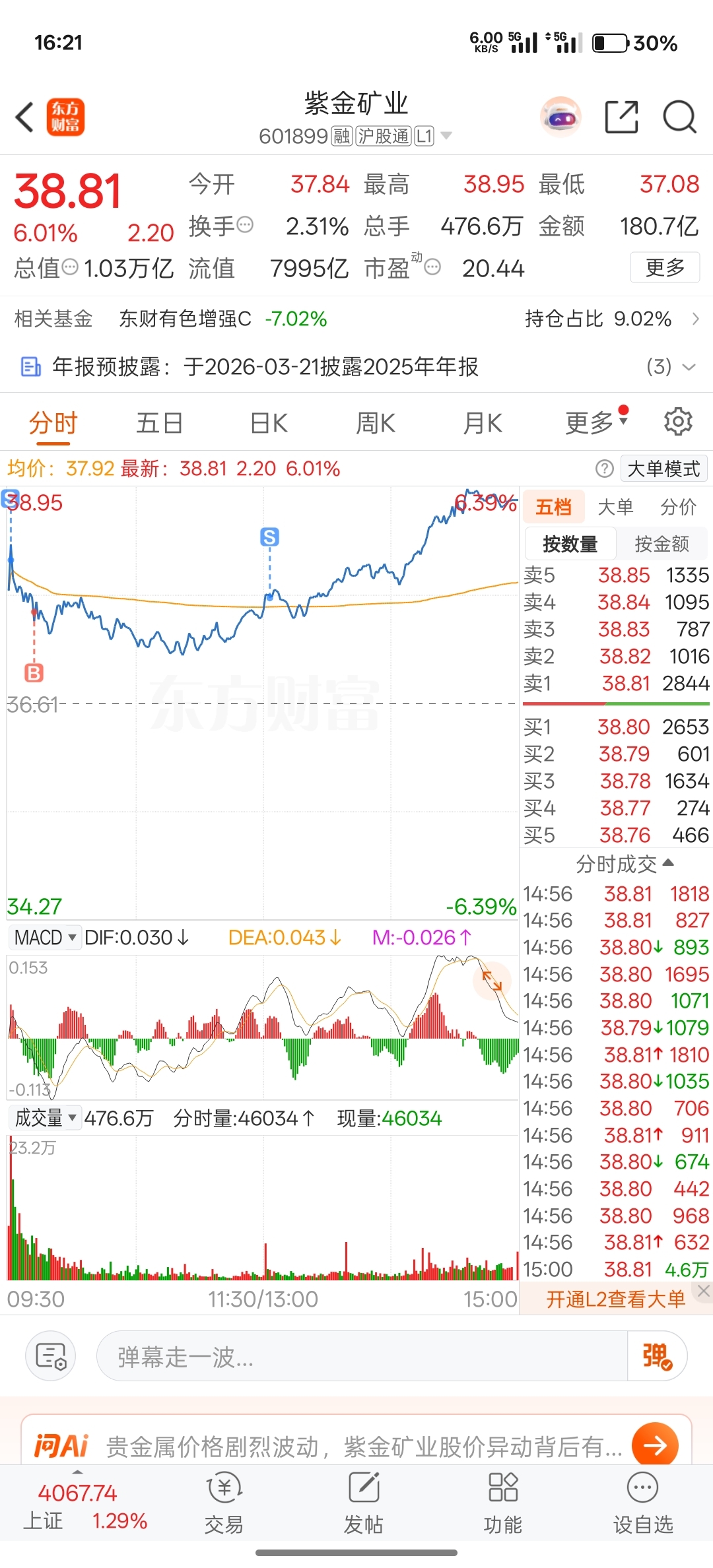 $紫金矿业(SH601899)$ 自以为很聪明,原来我就是个大聪明,飞了一半,干