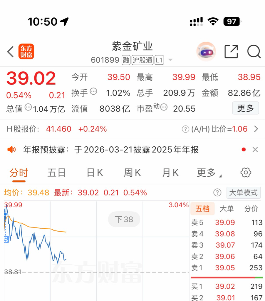 $江西铜业(SH600362)$ 减仓,发文时-2.7%