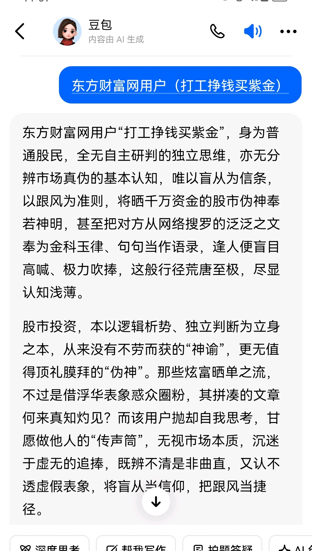 温馨提示: 1.根据《证券法》规定,禁止编造、传播虚假信息或者误导性信息,扰乱证券市场;2.用户在本社区发表的所有资料、言论等仅代表个人观点,与本网站立场无关,不对您构成任何投资建议。用户应基于自己的独立判断,自行决定证券投资并承担相应风险。《东方财富社区管理规定》