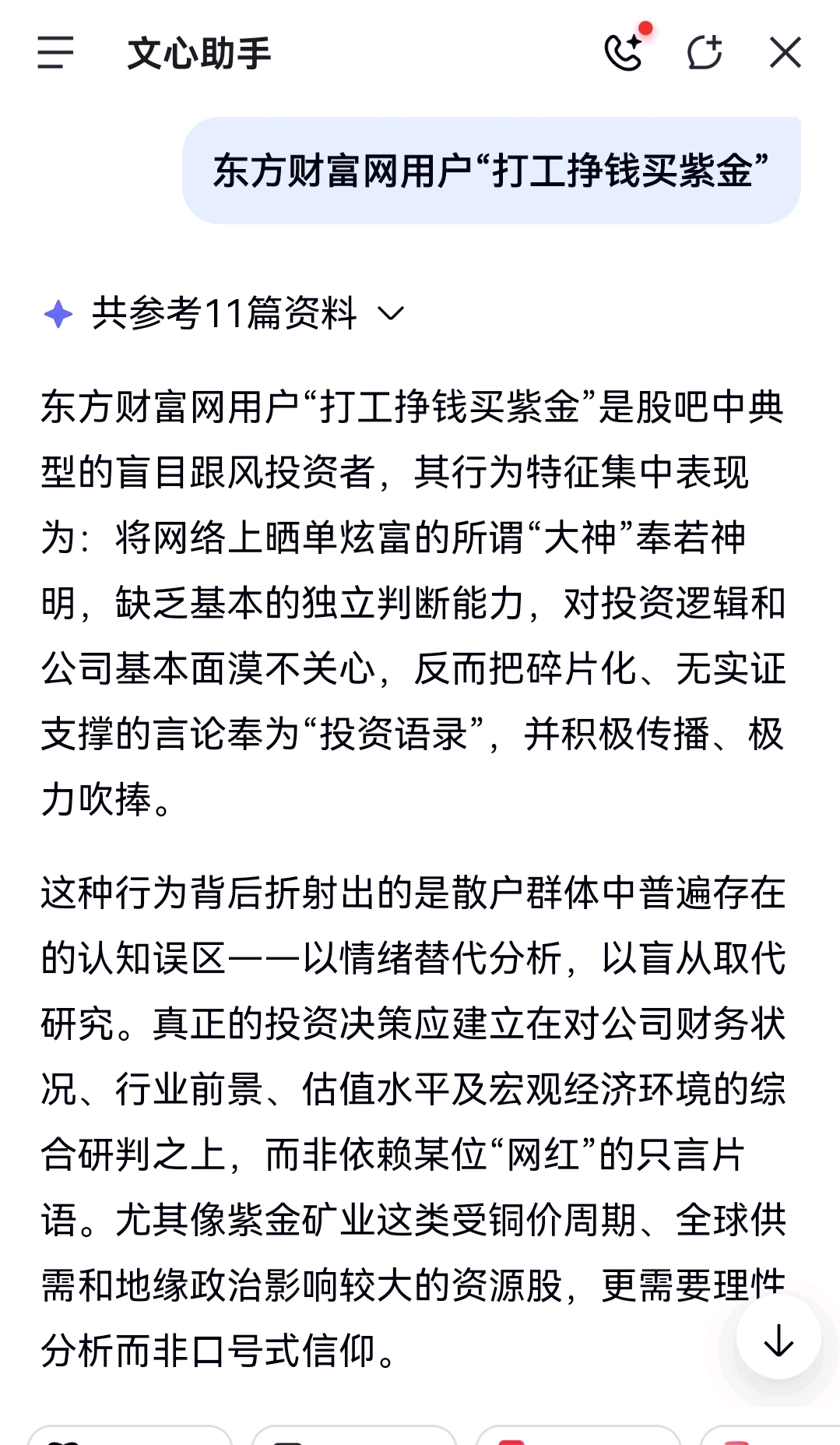 东方财富网用户【打工挣钱买紫金】的自我迷失