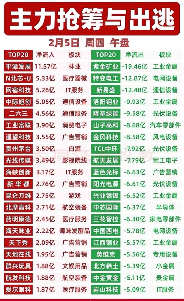 今日主力资金净流出标的集中在工业金属、光伏设备、通信设备等前期高景气赛道,核心是资金获利了结与情绪分歧加剧。各板块龙头企业虽短期承压,但部分具备中长期成长逻辑,建议结合后续资金流向与行业景气度,优先选择技术壁垒高、订单明确的标的,规避纯情绪驱动的高位品种。