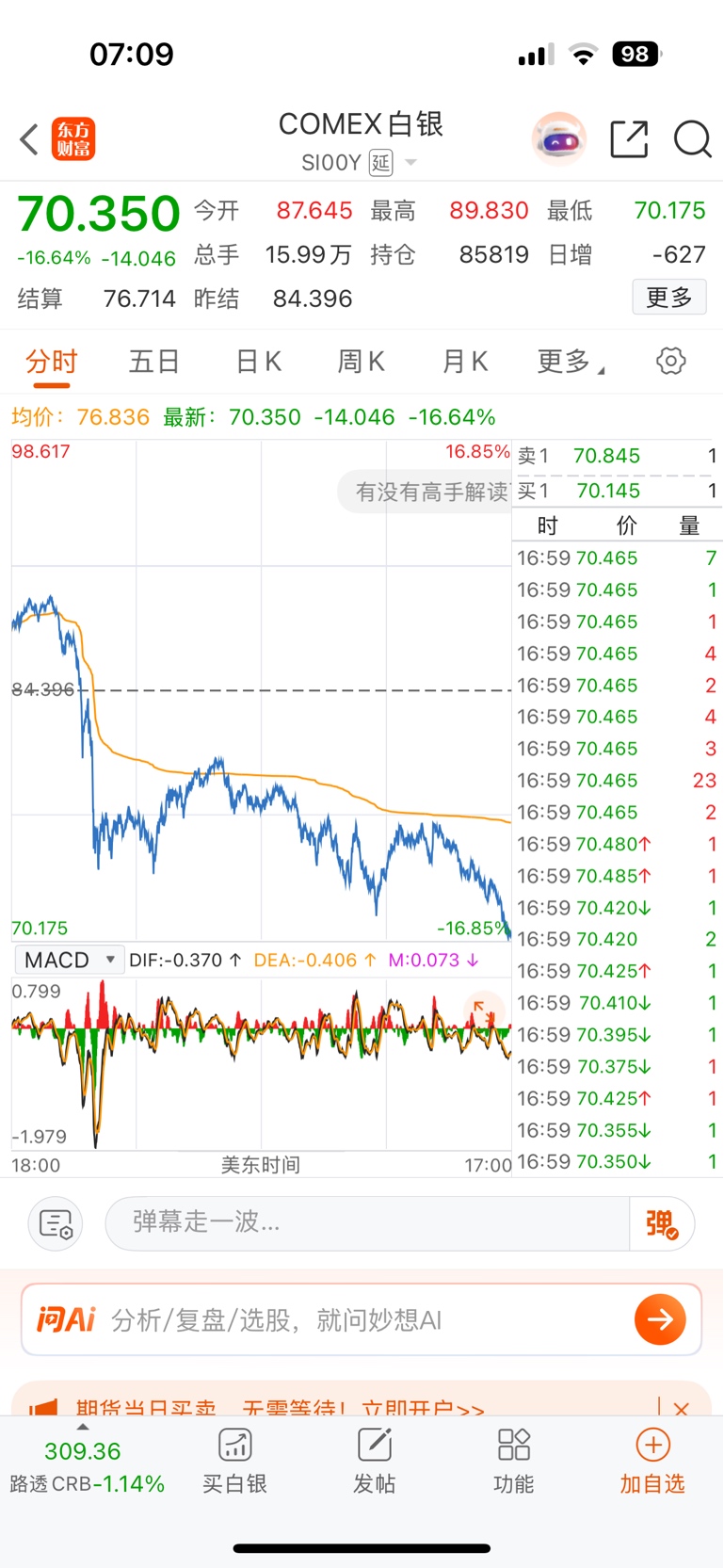 白银阴跌破位,很大可能继续下跌。建议:挂跌停价跑路。小概率谈判破裂,打起来,白银