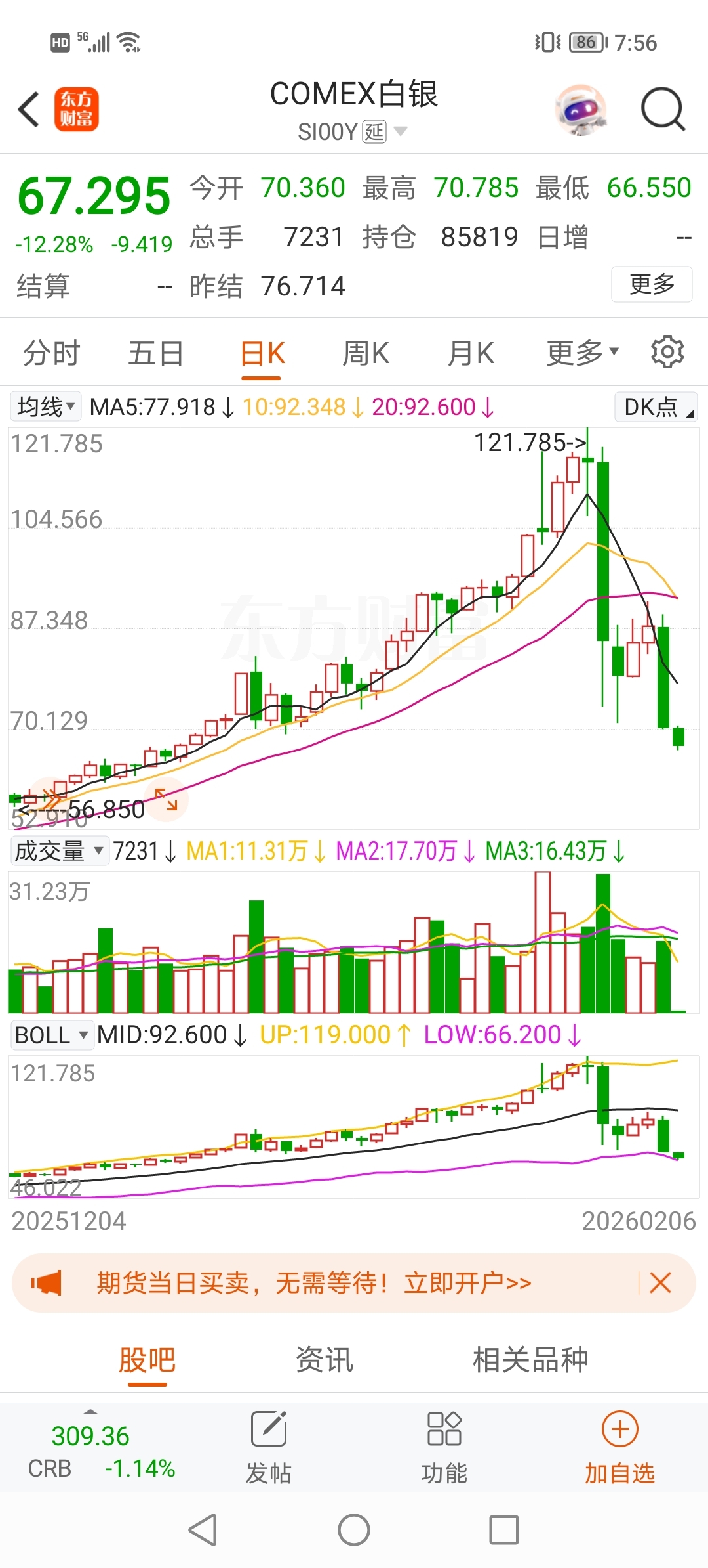 $紫金矿业(SH601899)$ 6日早盘,白银在昨晚暴跌16.6%后继续暴跌超12%
