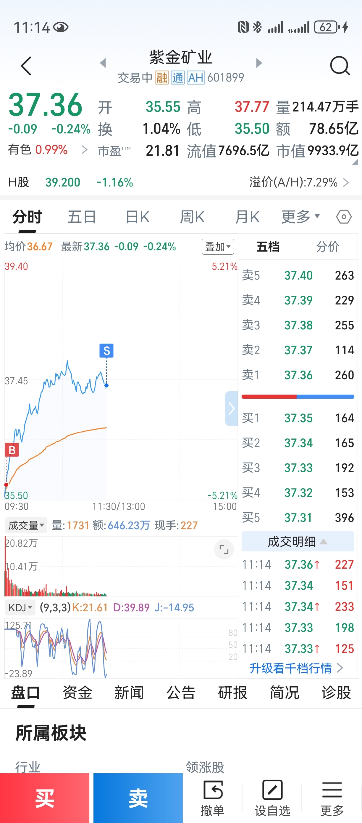 $紫金矿业(SH601899)$ 算了先T 7手 有点怕